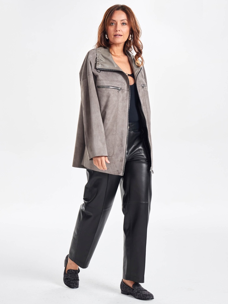 Кожаные и замшевые вещи сегодня представлены в линейке фасонов — от лаконичной классики до смелых, расслабленных силуэтов. Это помогает женщине подобрать модель: ту, что выгодно подчеркнет фигуру, органично впишется в повседневный стиль, станет любимой вещью на несколько сезонов вперёд.