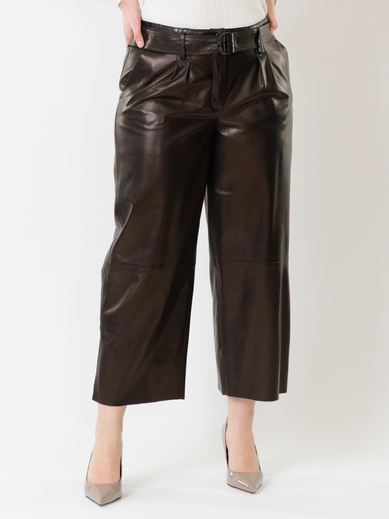Смелый, современный выбор для городских луков. Кожаные кюлоты отлично смотрятся в комплекте с высокими сапогами или ботильонами, а весной — с лоферами, кедами. Укороченная модель творит образ менее формальным, добавляет динамики, — особенно если сочетать такие вещи с верхом сложного кроя, жилетами или кожаными рубашками.