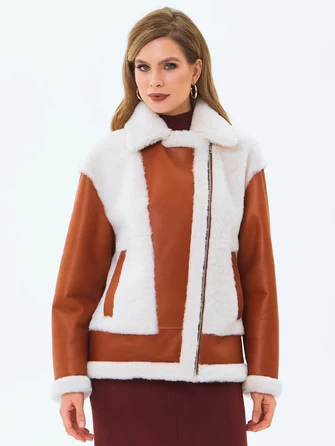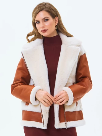 Короткая женская дубленка из натуральной овчины премиум класса 2066, виски, размер 52, артикул 64710