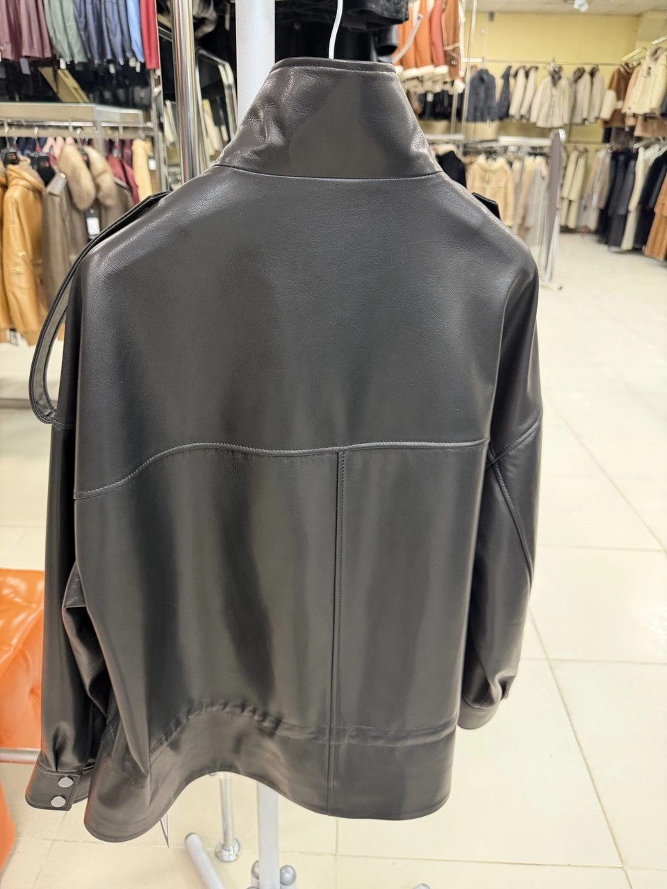 Стильная свободная модель длиной 65 см. из мягкой кожи премиум-класса с удобным спущенным рукавом на манжете: воротник-стойка и нагрудные карманы с клапанами на кнопках создают лаконичный образ, а широкие погоны, регулируемый кулиской низ и дополнительный клапан поверх молнии добавляют брутальный шарм. Совет стилиста: носите с кожаными брюками и грубыми ботинками для дерзкого образа или с джинсами-скинни и «оверсайз-свитером из мягкого кашемира» — эта куртка подарит свободу движений и подчеркнёт ваш безупречный вкус.