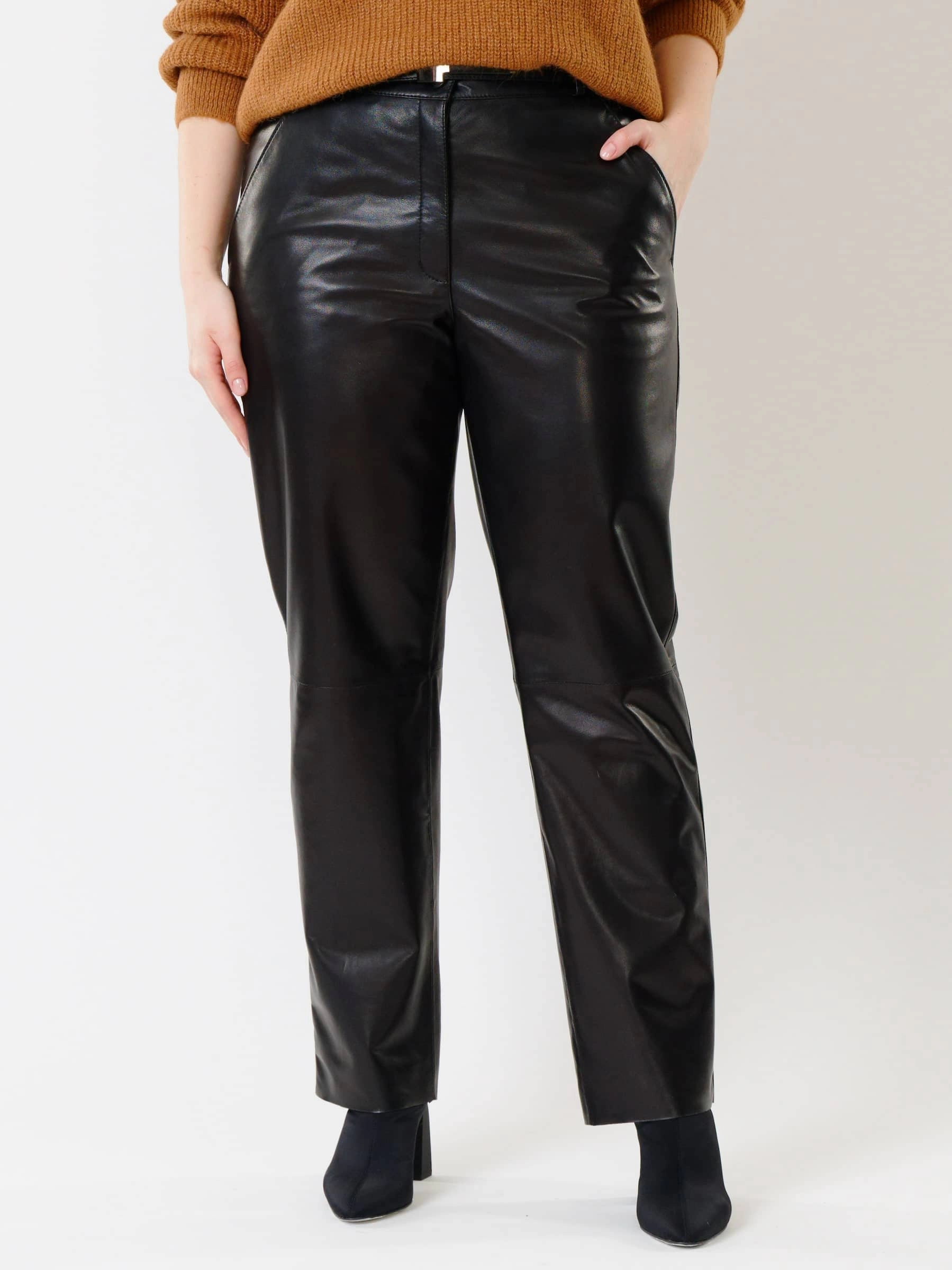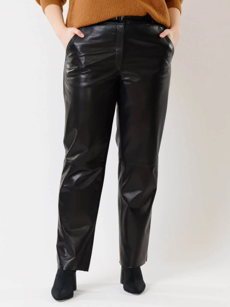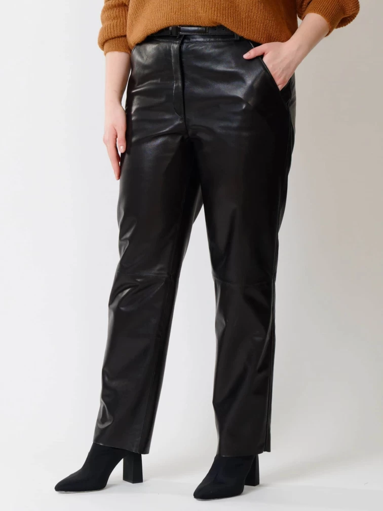 Черные прямые женские кожаные брюки 04, размер 52, артикул 85392
