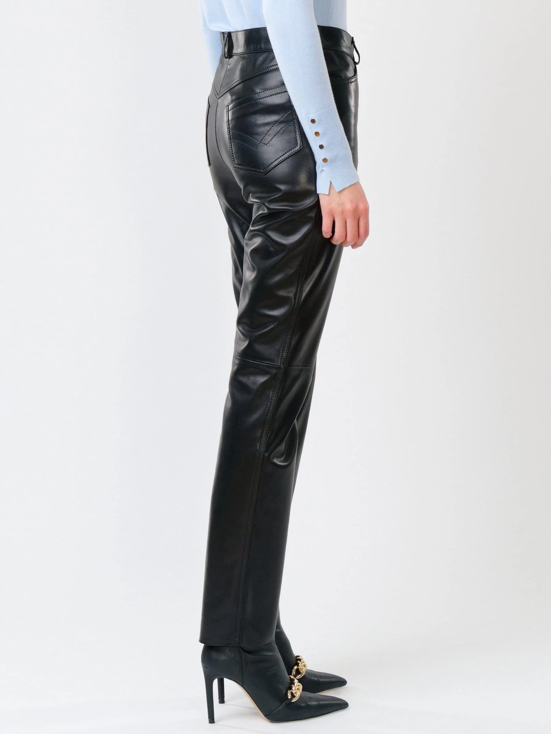 Черные зауженные женские кожаные брюки 02, размер 44, артикул 85232