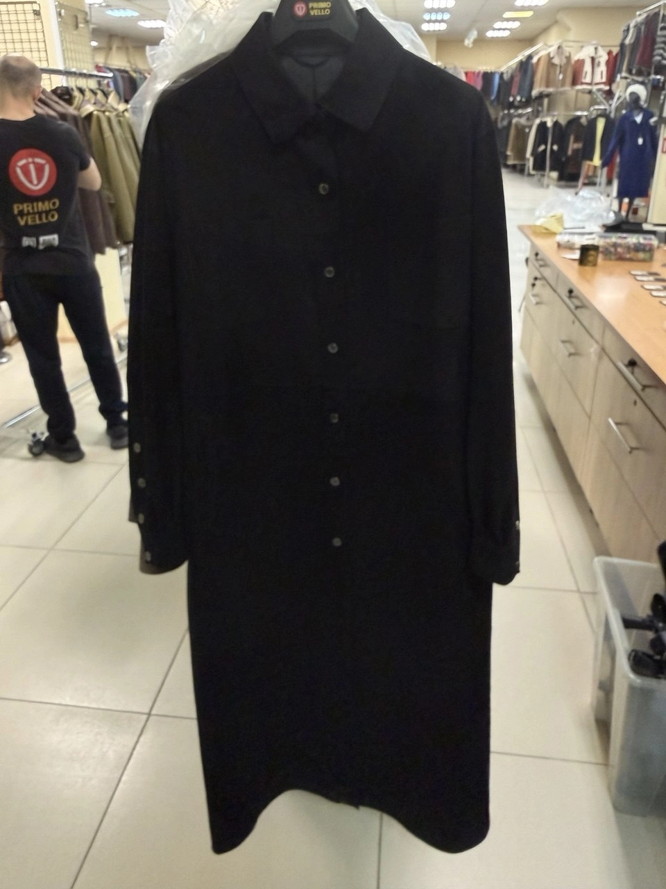 Товар черный женский замшевый плащ премиум класса 3112з, размер 46, артикул 92380 выполнен из натуральной замши с застежкой кнопки. Рассчитан на сезон: весна-осень. Длина изделия 133 см, силуэт прямой.
