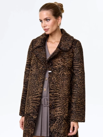 Товар длинное пальто из меха каракульчи для женщин премиум класса лола(ав), темно-коричневое, размер 50, артикул 33980 выполнен из каракульча с застежкой клипсы. Рассчитан на сезон: весна-осень. Длина изделия 114 см, силуэт прямой.