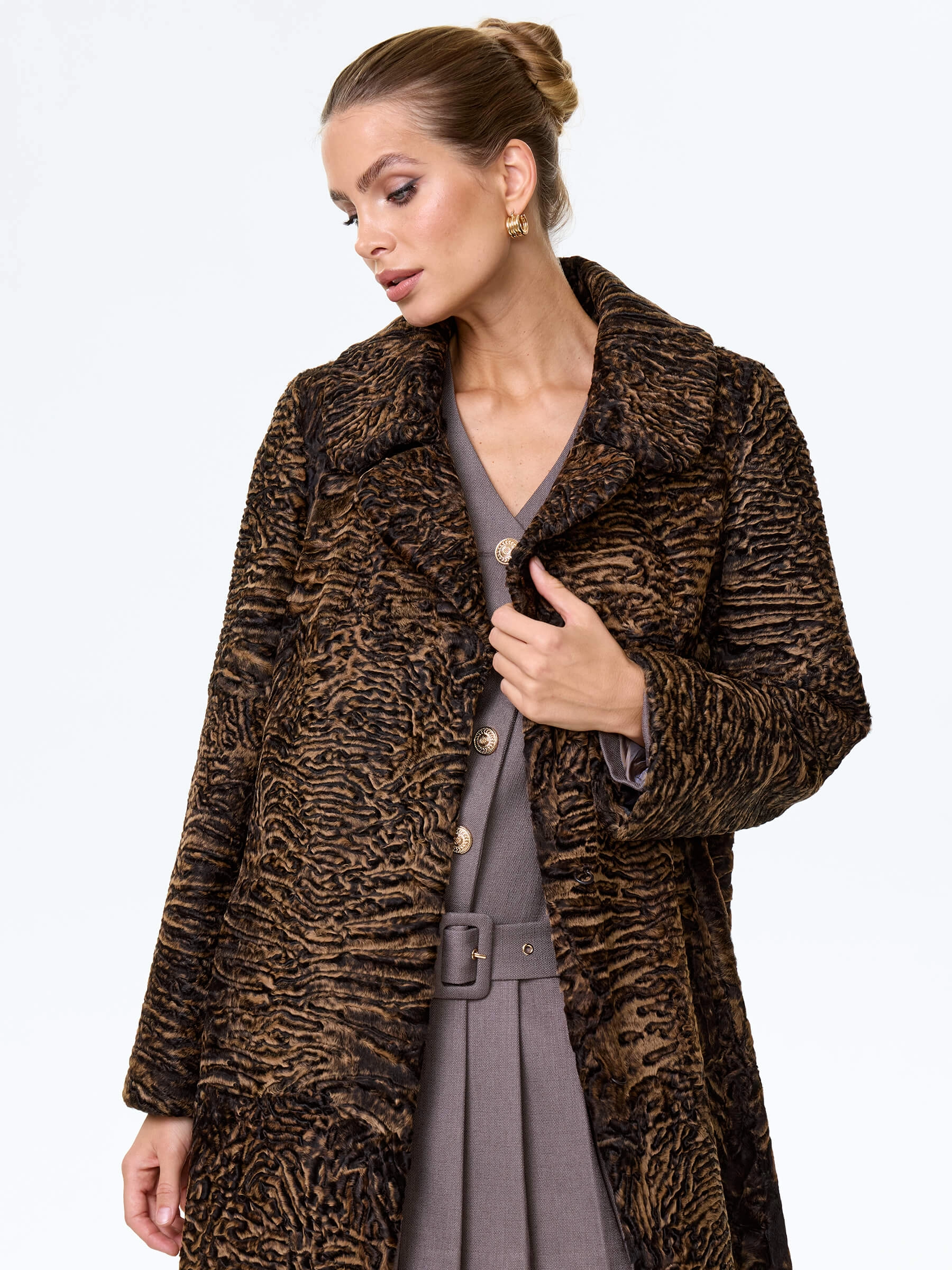 Длинное пальто из меха каракульчи для женщин премиум класса Лола(ав), темно-коричневое, размер 50, артикул 33980
