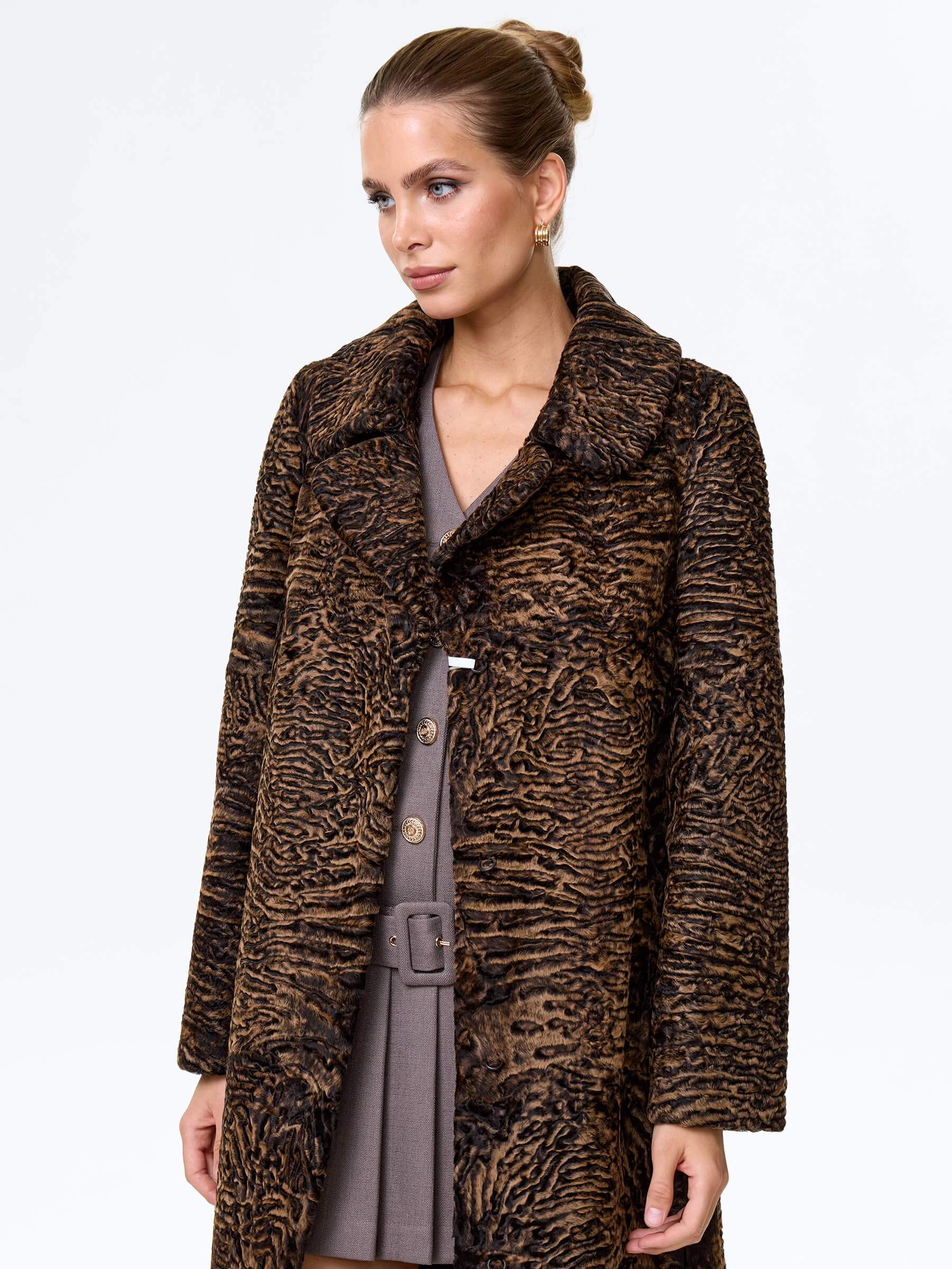 Длинное пальто из афганской каракульчи в благородном натуральном цвете. Английский воротник. Идеальный подбор шкурок по оттенку и структуре. Аккуратная работа портных. Премиальное качество меха и комфортная посадка по фигуре.