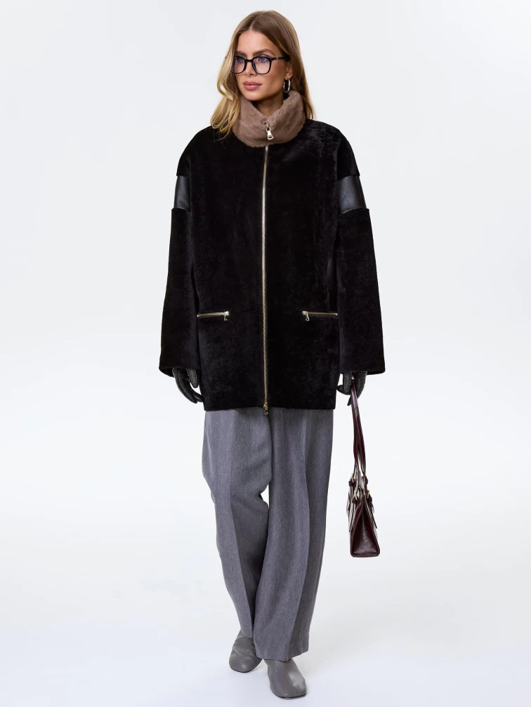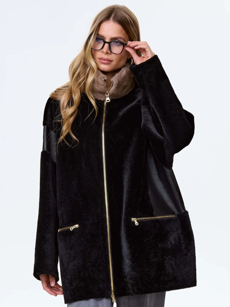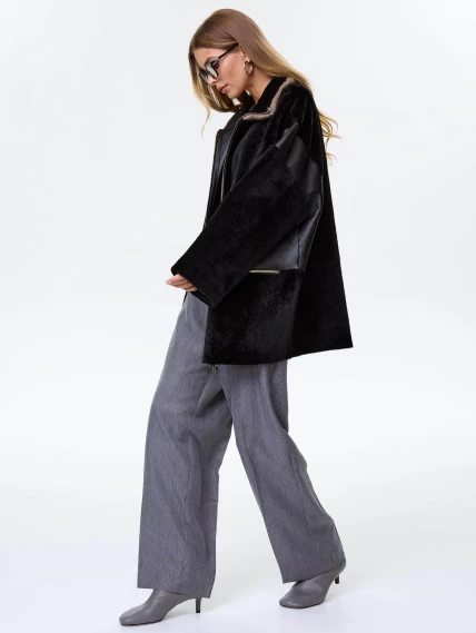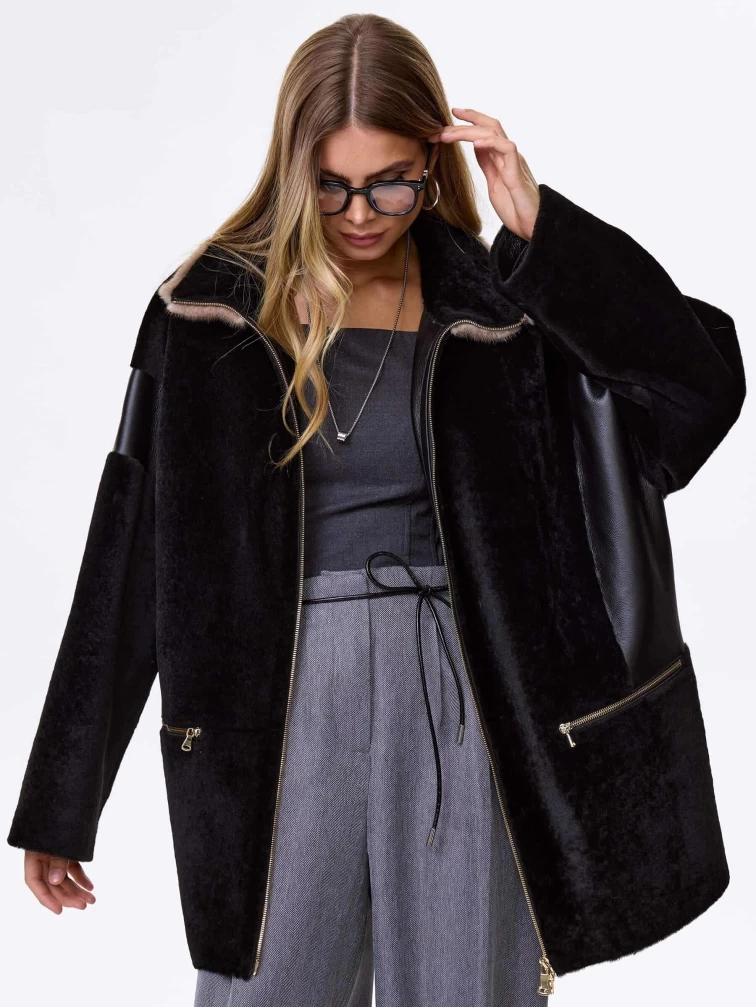 Товар дубленка на молнии с норковым воротником для женщин премиум класса 2057, черная, размер 52, артикул 62500 выполнен из овчина "мерино" с застежкой молния. Рассчитан на сезон: осень-зима. Длина изделия 77 см, силуэт свободный.