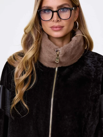 Дубленка на молнии с норковым воротником для женщин премиум класса 2057, черная, размер 52, артикул 62500
