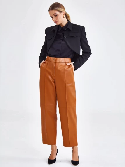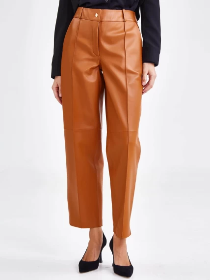 Товар коричневые модные женские кожаные брюки 08, размер 42, артикул 85912 выполнен из натуральной кожи с застежкой молния. Рассчитан на сезон: весна-лето. Длина изделия 95 см, силуэт прямой.