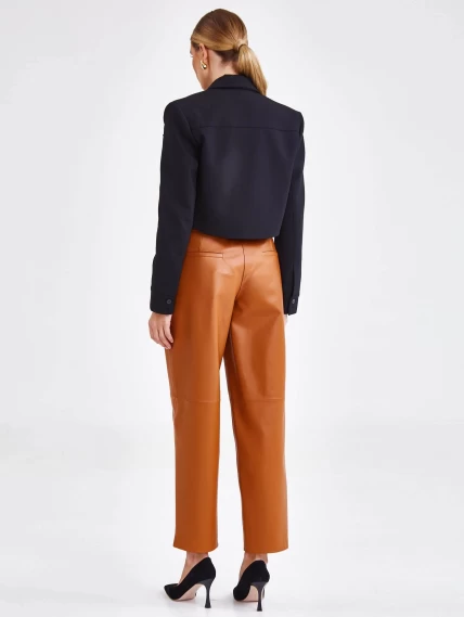 Создать эффектный образ помогут брюки со стрелками из натуральной кожи премиум-класс. Прямой крой, средняя посадка, удобные боковые карманы.