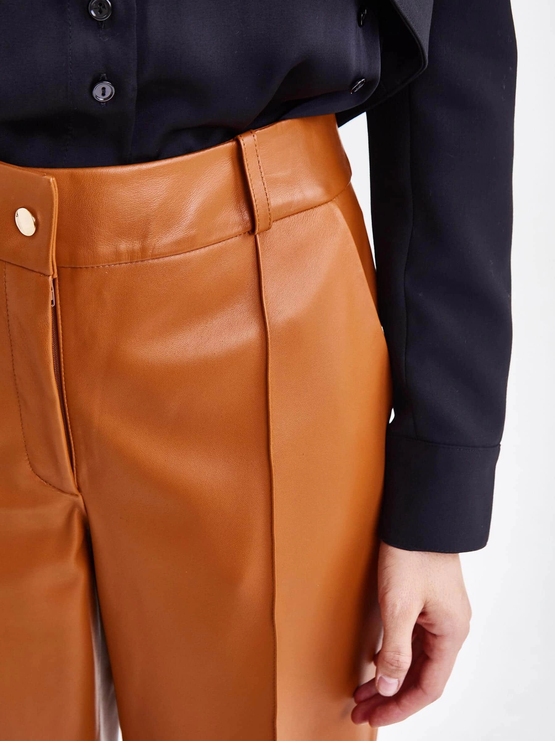 Коричневые модные женские кожаные брюки 08, размер 42, артикул 85912
