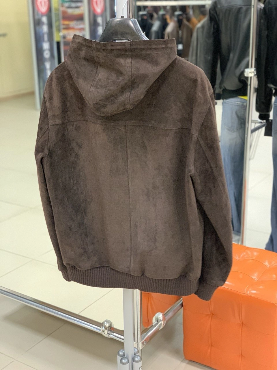 Товар коричневый замшевый мужской бомбер премиум класса 567з, размер 50, артикул 29890.