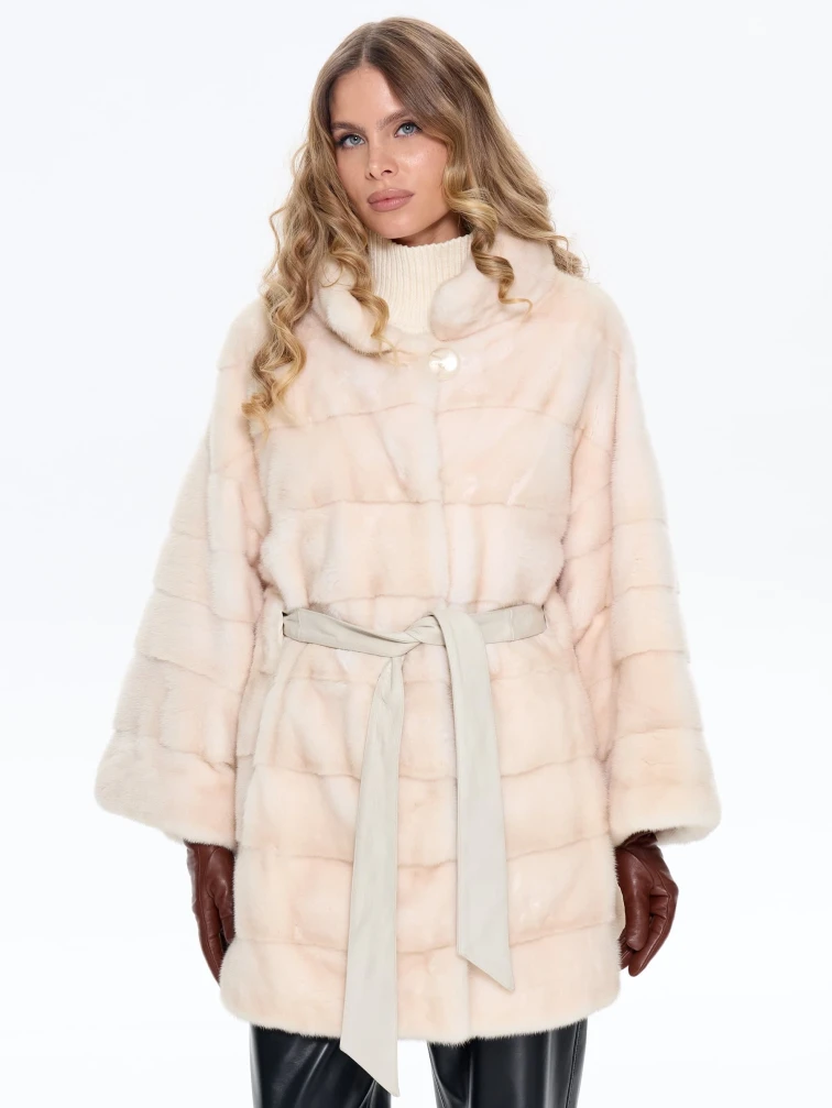 Короткая бежевая норковая женская шуба MANAKAS 2524, размер 44, артикул 34460