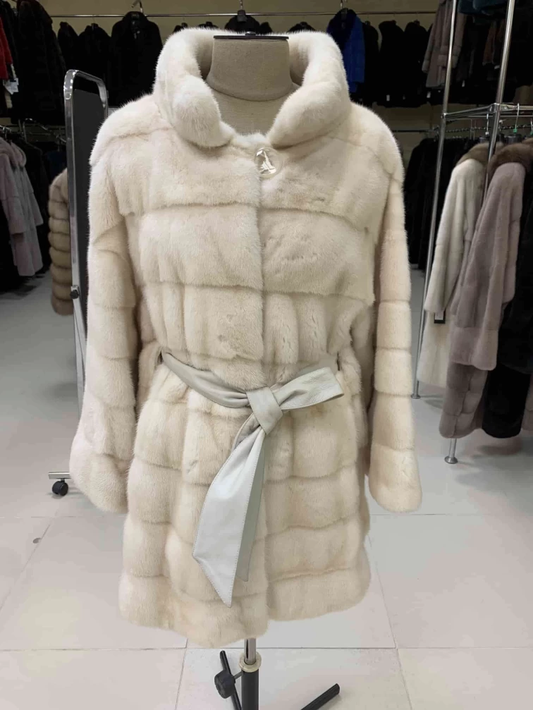 Товар короткая бежевая норковая женская шуба manakas 2524, размер 44, артикул 34460 выполнен из норка с застежкой клипсы. Рассчитан на сезон: зима. Длина изделия 78 см, силуэт прямой.