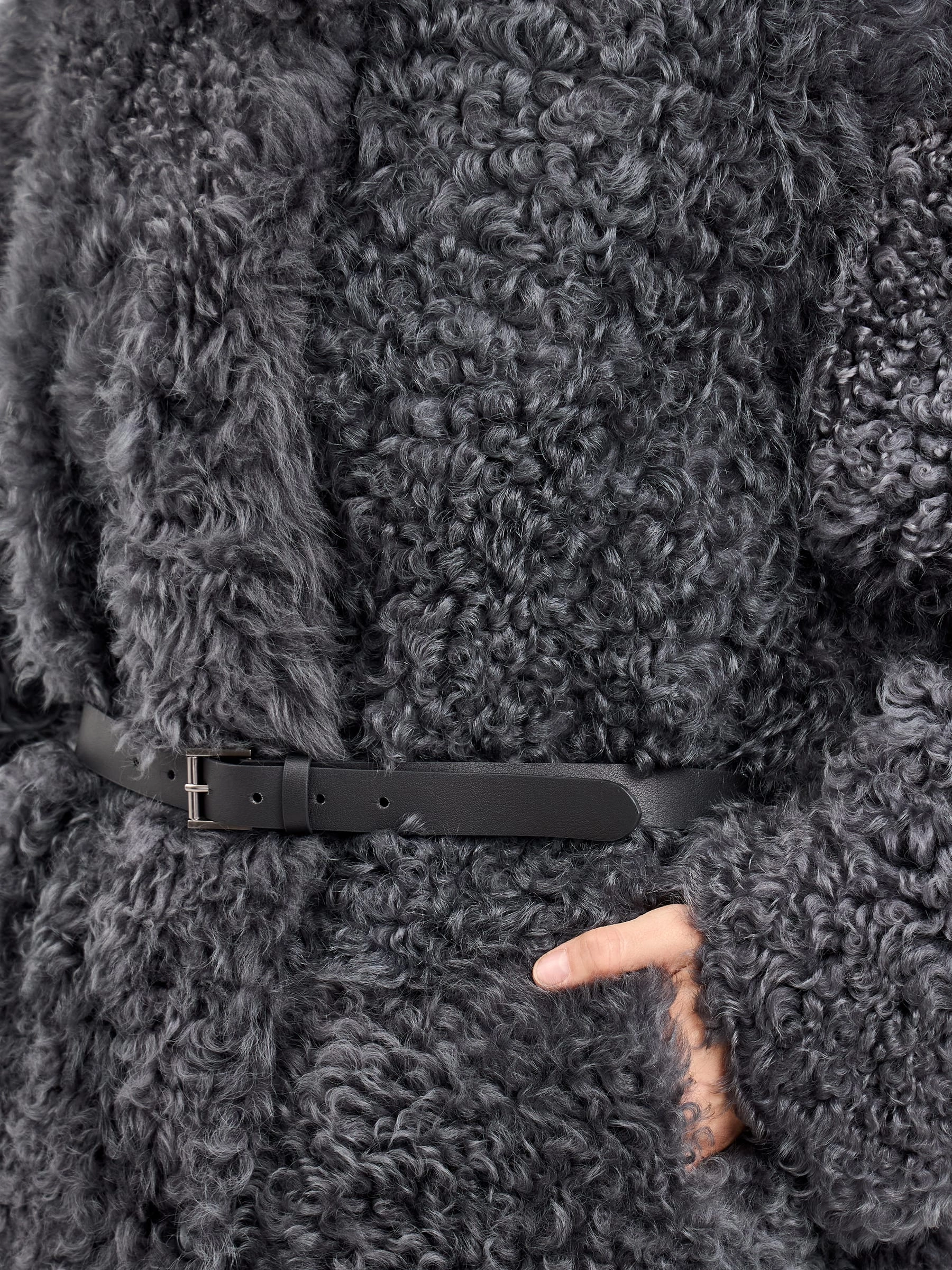 Короткая дубленка из натуральной овчины «Тиградо» с выразительной текстурой крупного завитка. Эта модель не для скромных! Свободный силуэт, спущенный рукав и воротник-стойка создают образ с характером. Совет стилиста: наденьте с кожаными брюками и грубыми ботинками для уличного шика или с однотонным платьем и сапогами-челси для контраста фактур.