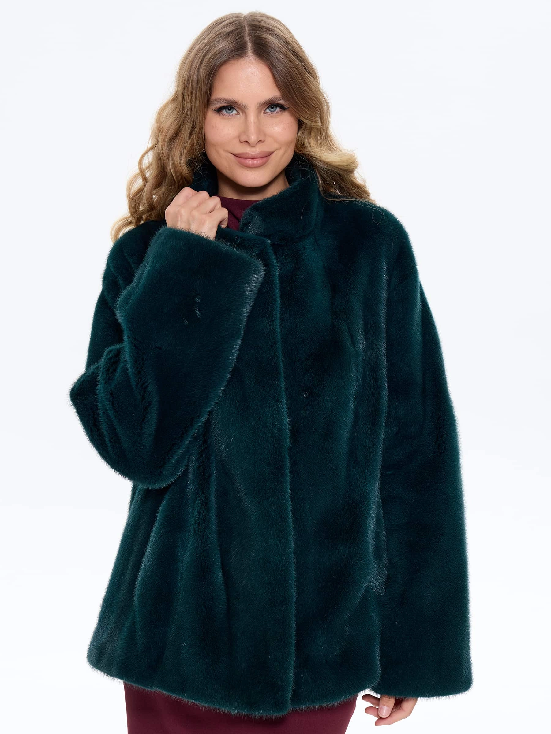 Короткая женская норковая куртка Жанет-2, зеленая, размер 44, артикул 65660