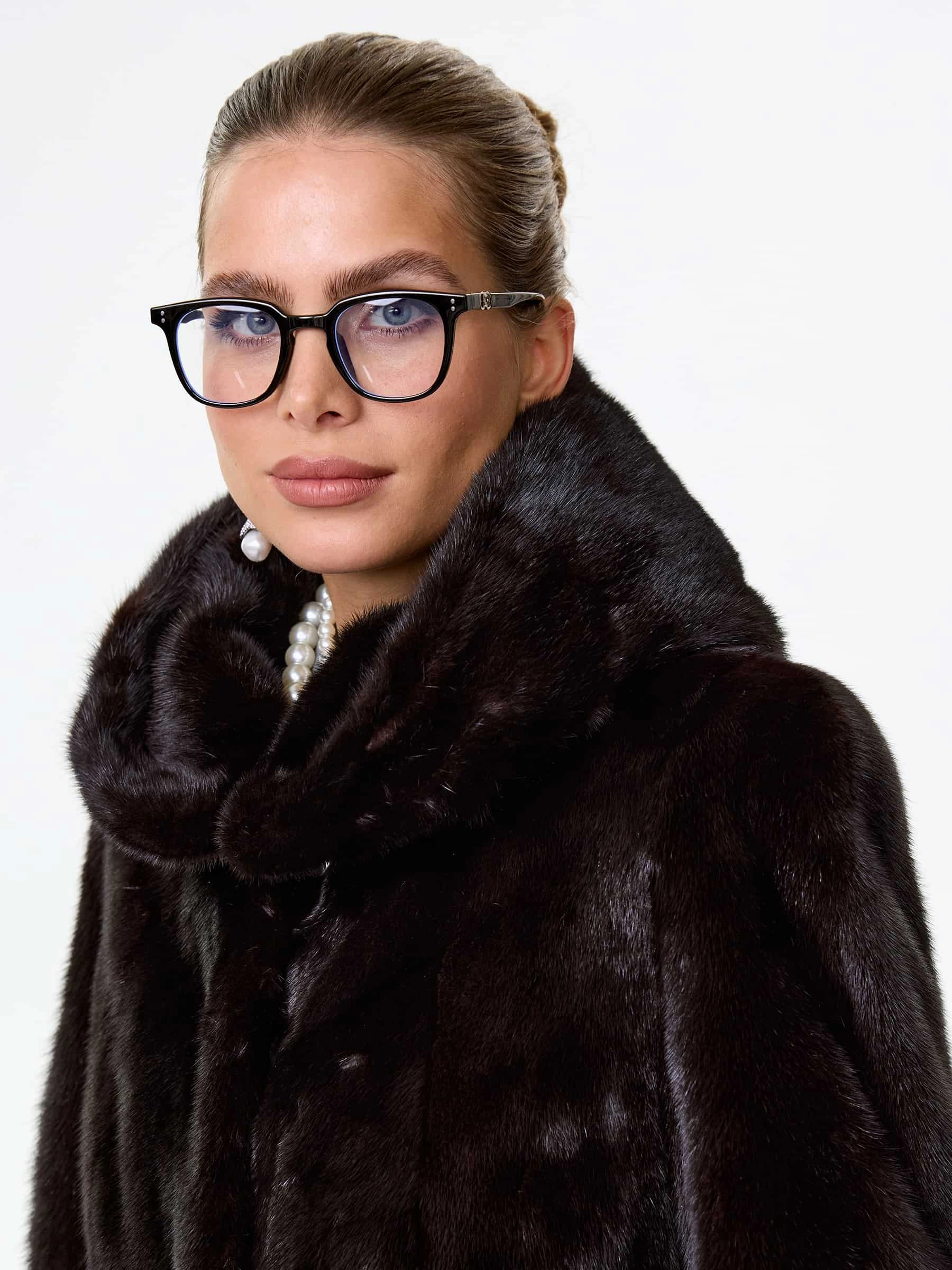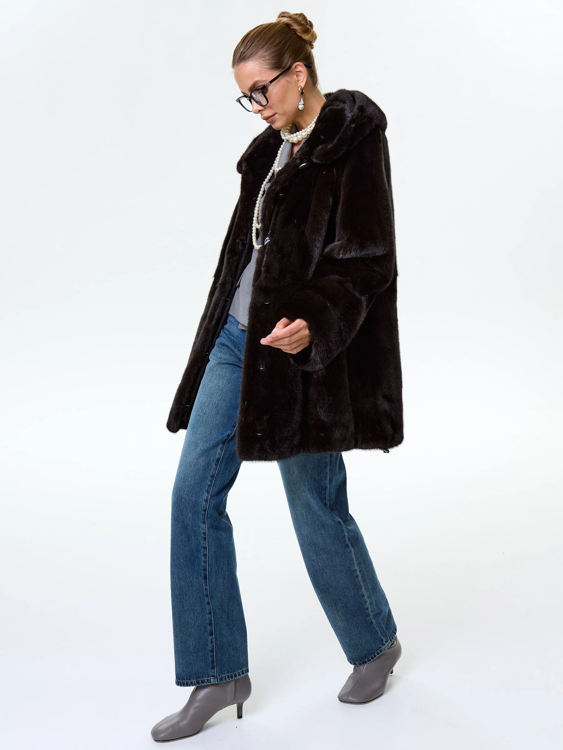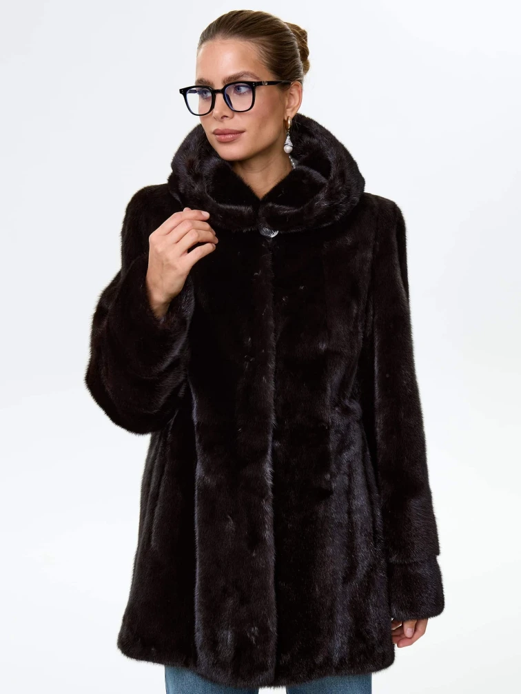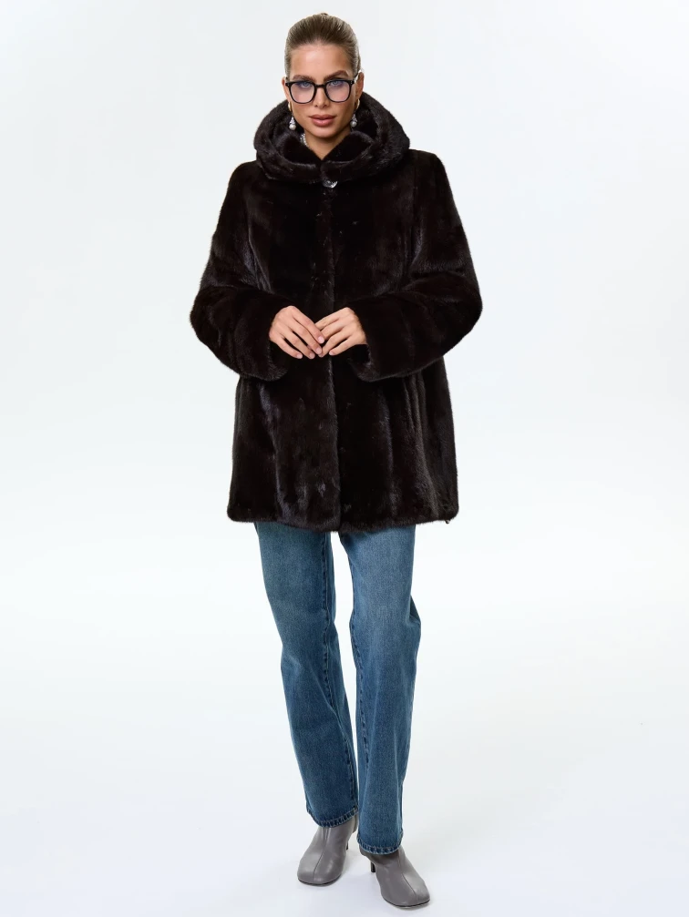 Короткая женская норковая шуба автоледи с капюшоном Елена(к), черная, размер 50, артикул 64540