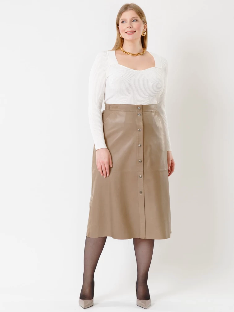 Длинная юбка из натуральной кожи на кнопках длиной 80 см с расклешённым силуэтом обеспечивает безупречную посадку. Мягкая кожа премиального качества идеально сочетается с облегающими водолазками, объёмными свитерами и кожаными косухами — дополните образ ботильонами или сапогами на каблуке, добавьте тонкие металлические аксессуары, чтобы создать стильный лук на любой случай. Эта универсальная модель одинаково хороша для элегантных, уютных и дерзких образов, подчёркивая индивидуальность и чувство стиля.