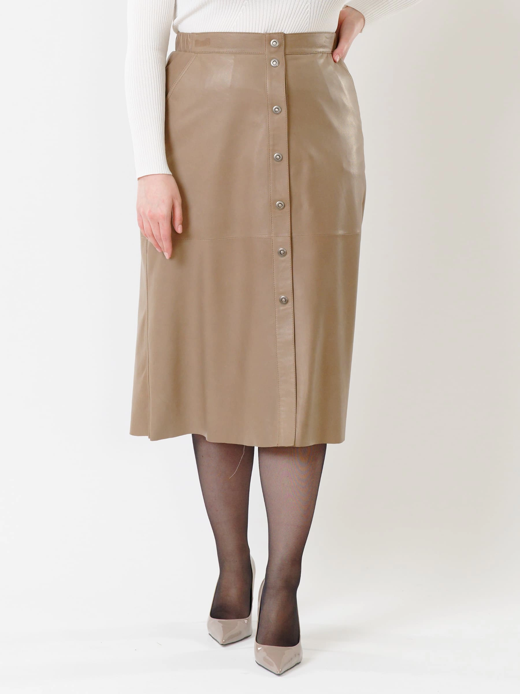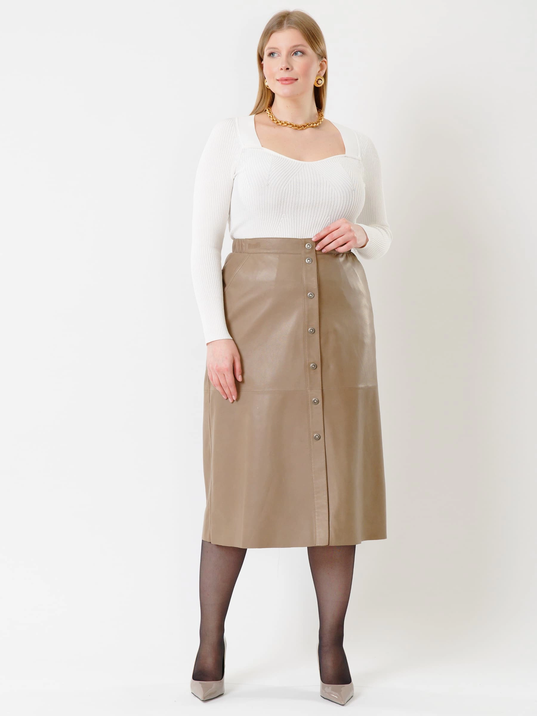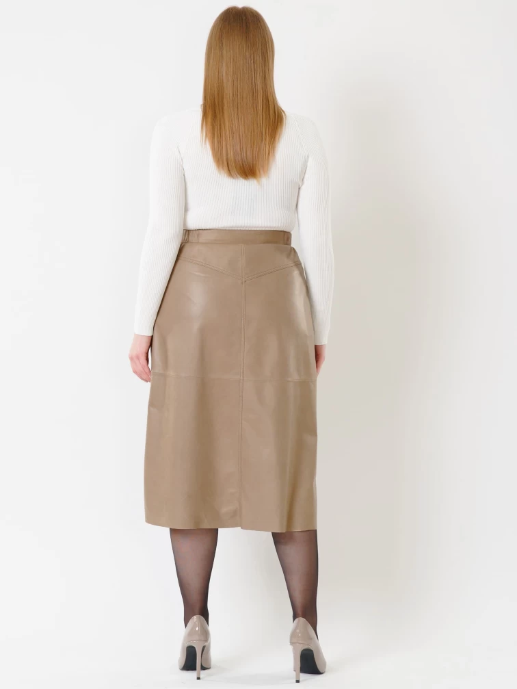 Товар длинная кожаная юбка 08, серо-коричневая, размер 50, артикул 85310 выполнен из натуральной кожи с застежкой кнопки. Рассчитан на сезон: демисезон. Длина изделия 80 см, силуэт расклешенный.