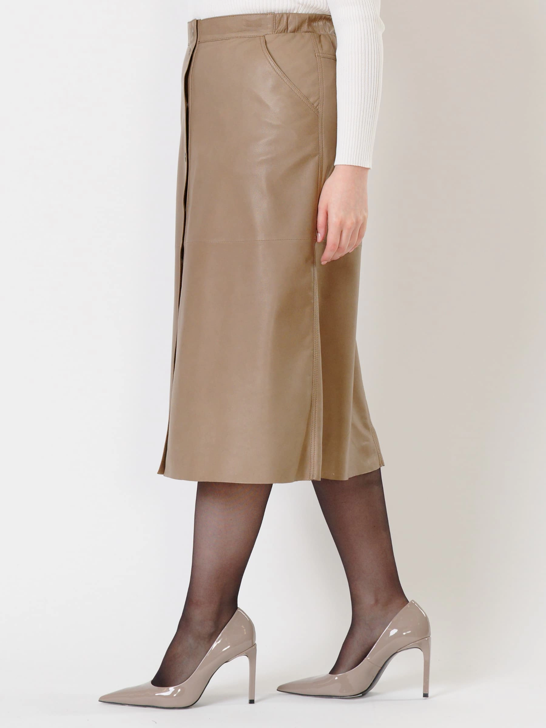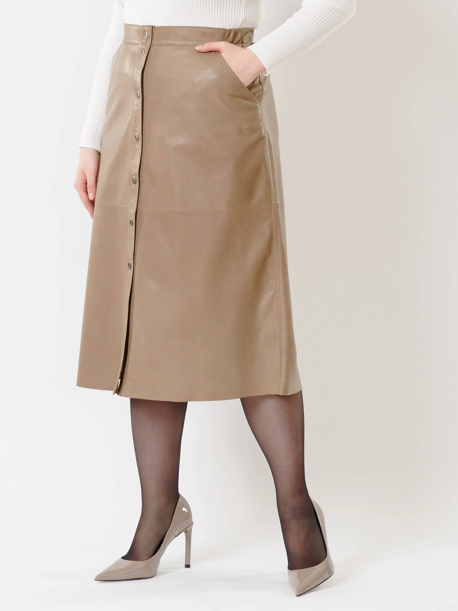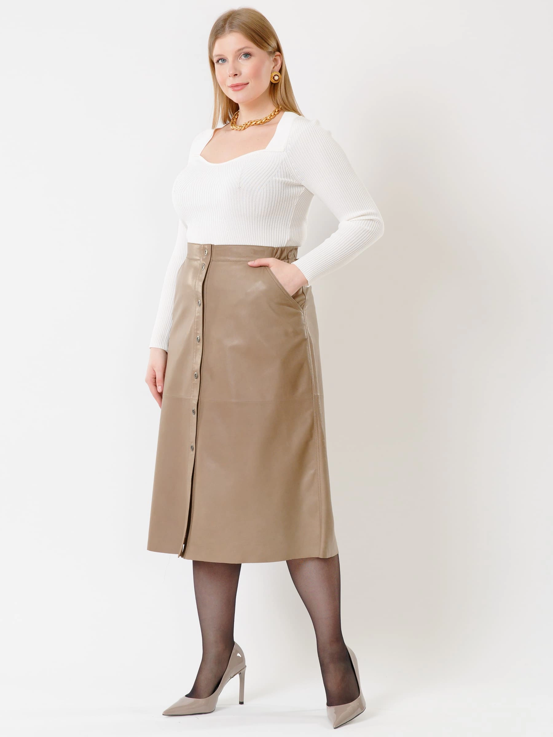 Товар длинная кожаная юбка 08, серо-коричневая, размер 50, артикул 85310 выполнен из натуральной кожи с застежкой кнопки. Рассчитан на сезон: демисезон. Длина изделия 80 см, силуэт расклешенный.