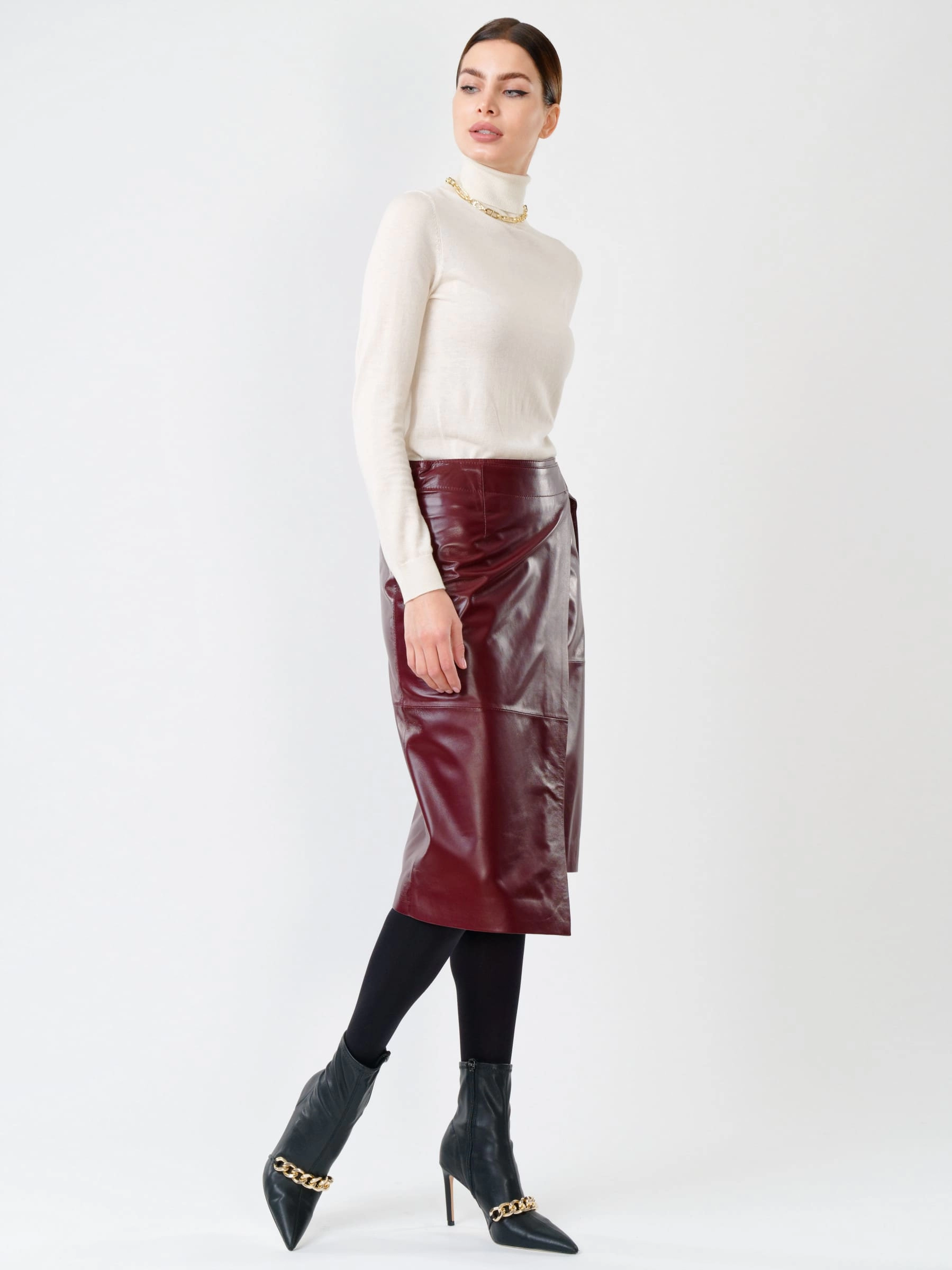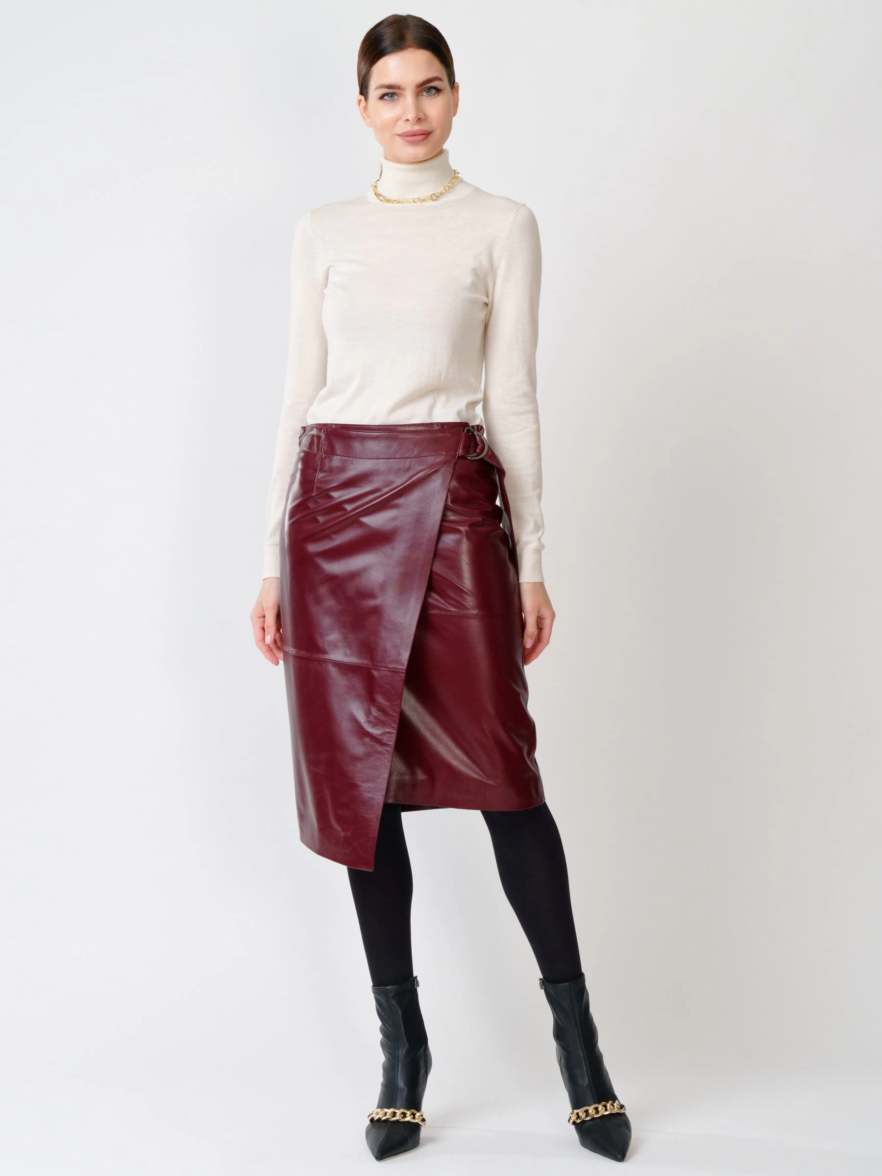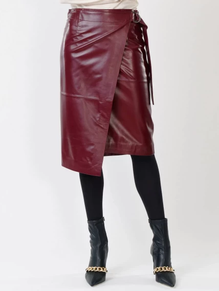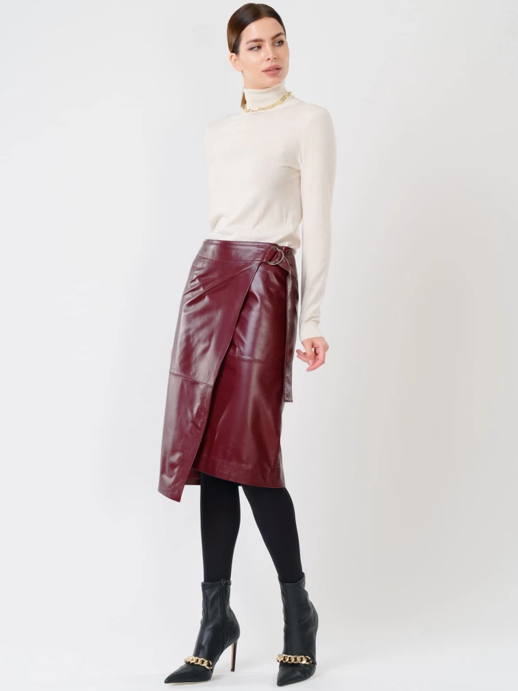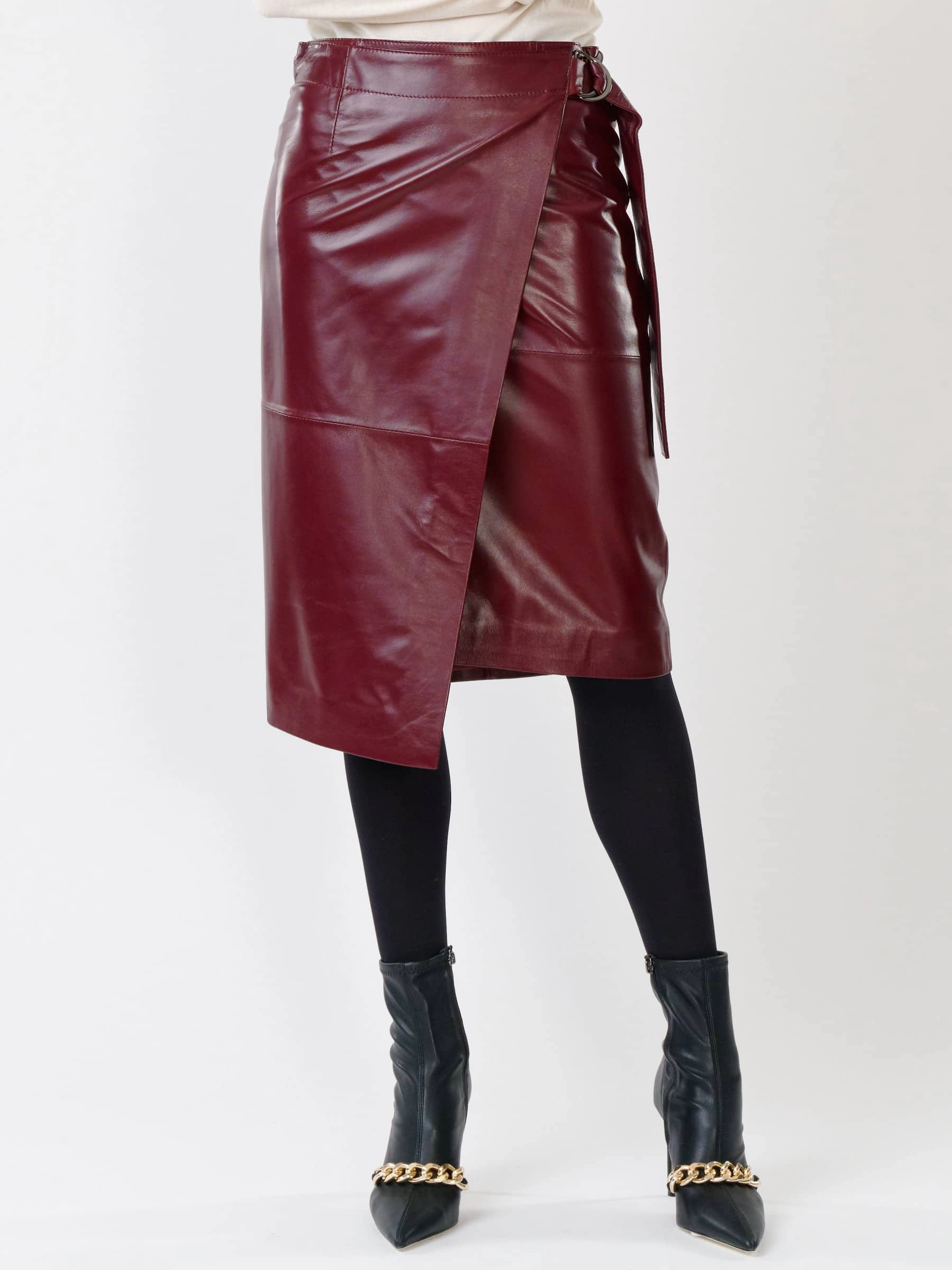 Товар кожаная юбка миди с запахом 07, бордовая, размер 42, артикул 85351 выполнен из натуральной кожи с застежкой молния. Рассчитан на сезон: демисезон. Длина изделия 65 см, силуэт прямой.