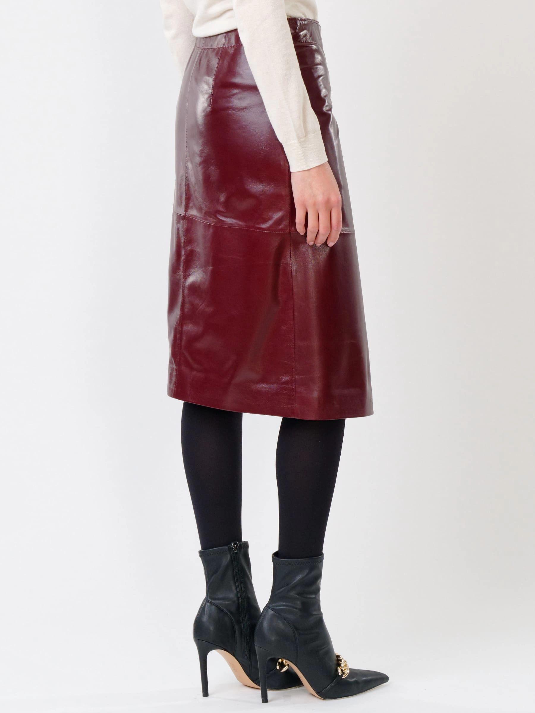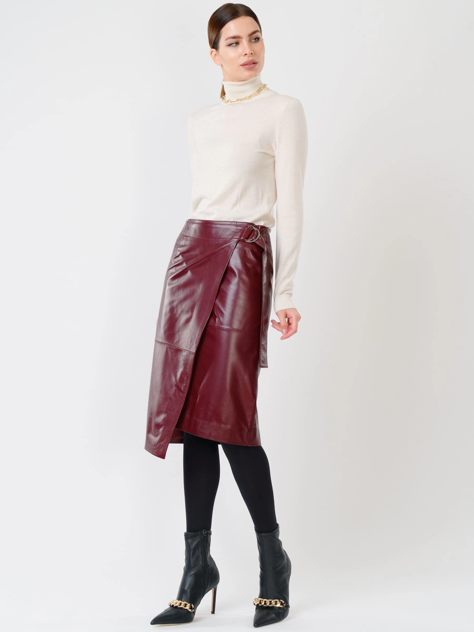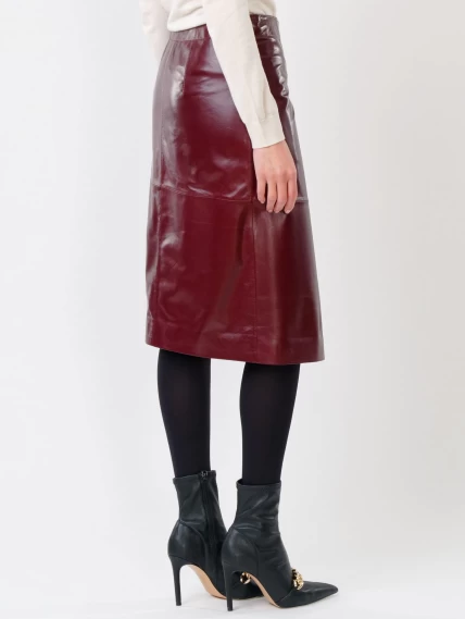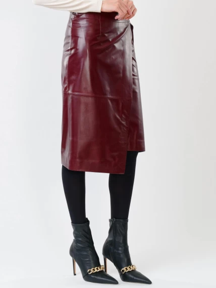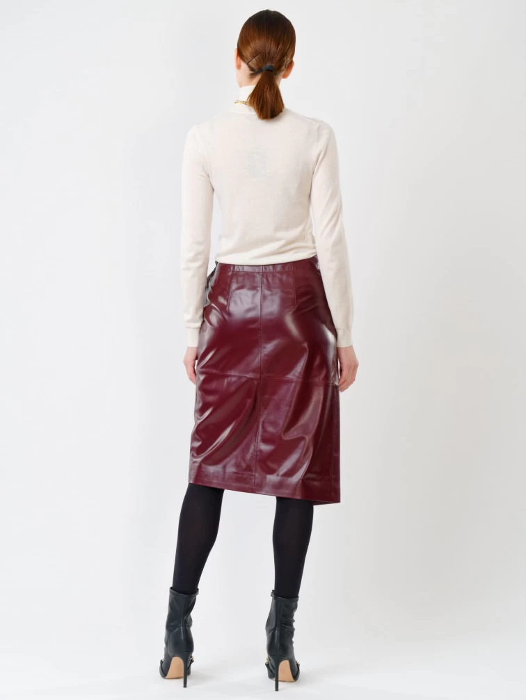 Товар кожаная юбка миди с запахом 07, бордовая, размер 42, артикул 85351 выполнен из натуральной кожи с застежкой молния. Рассчитан на сезон: демисезон. Длина изделия 65 см, силуэт прямой.