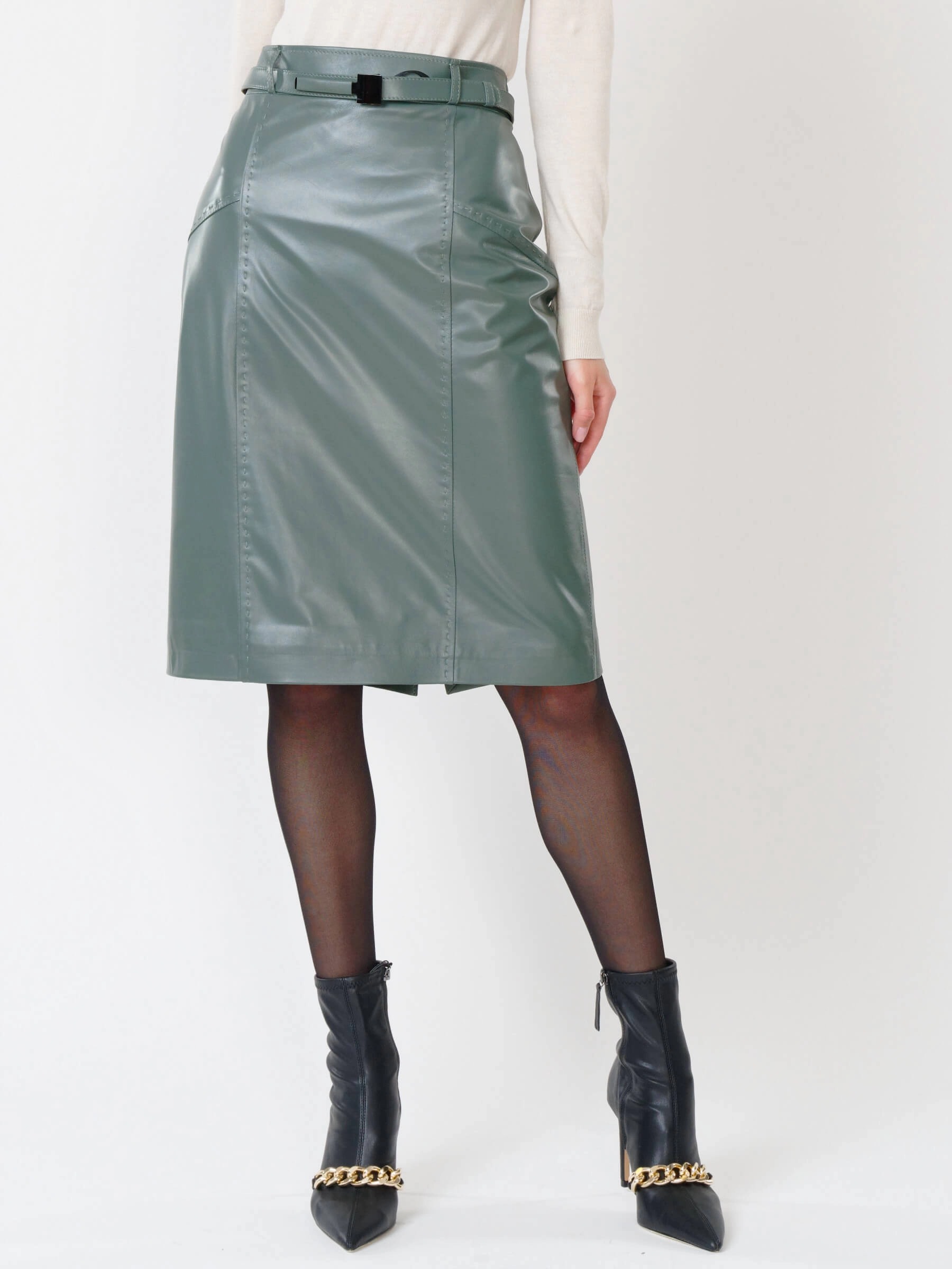Оливковая кожаная юбка карандаш 02рс, размер 46, артикул 85471