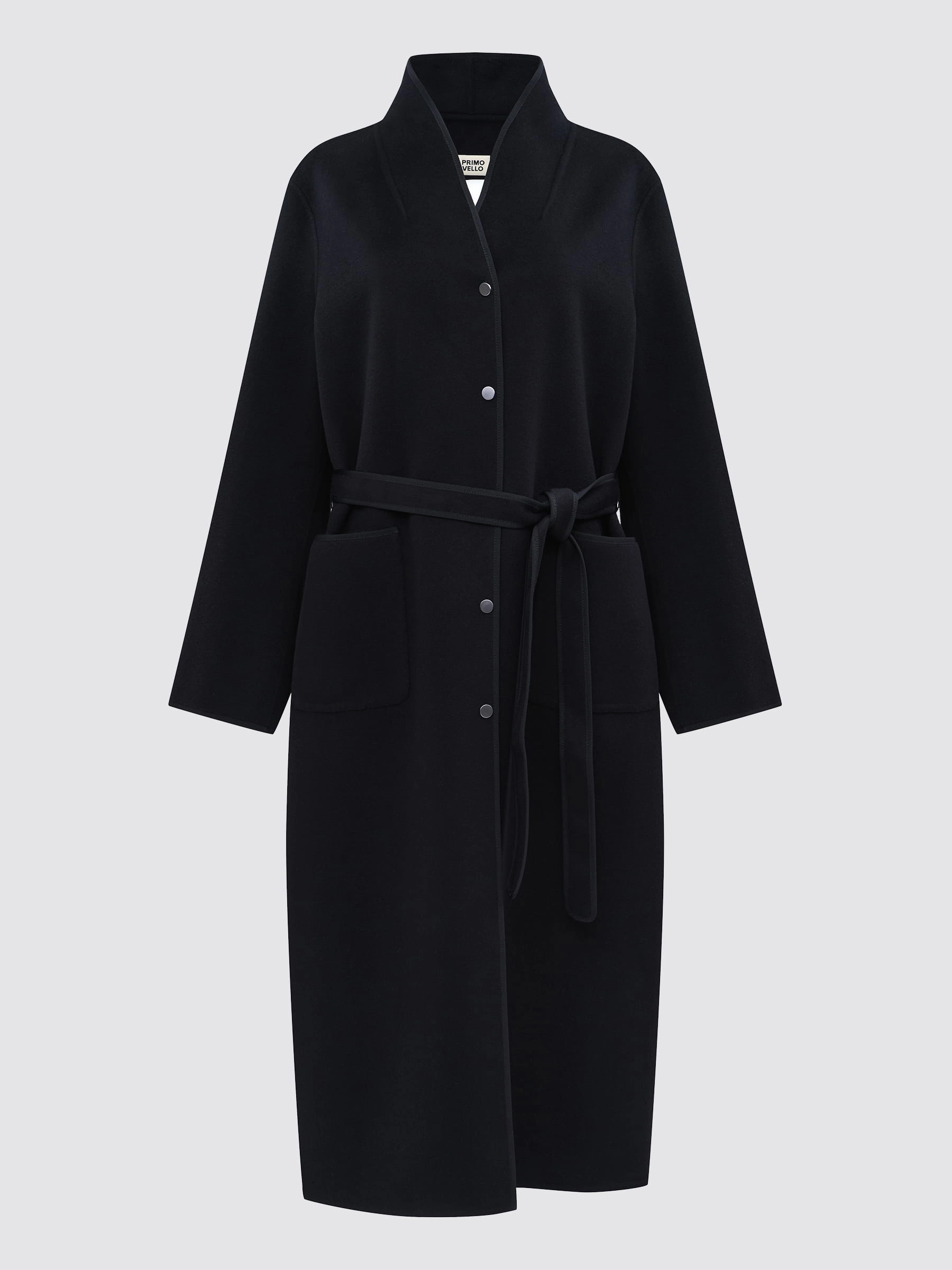 Это длинное женское пальто из кашемира премиум-класса - воплощение утонченной элегантности и безупречного качества. Модель прямого силуэта длиной 125 см с мягким шалевым воротником и спущенной линией плеча создает расслабленный, но невероятно благородный образ. Два накладных кармана добавляют функциональности, не нарушая чистоты линий. Особая деталь — изысканная отделка тонким кантом в тон по карманам и рукавам: этот деликатный дизайнерский прием мягко выделяет линии кроя, подчеркивая архитектуру пальто и добавляя графичности без лишней контрастности. Застежка на кнопках подчеркивает лаконичность, а длинный пояс позволяет легко трансформировать силуэт: носите пальто свободно для непринужденного шика или подчеркните талию, создавая изящный женственный контур. Пальто выполнено из нежного, легкого кашемира премиум-класса, который дарит тепло, мягкость и ощущение уюта с первой минуты. Ручная работа в каждой детали — свидетельство исключительного внимания к качеству и долговечности. Полное отсутствие подкладки дел