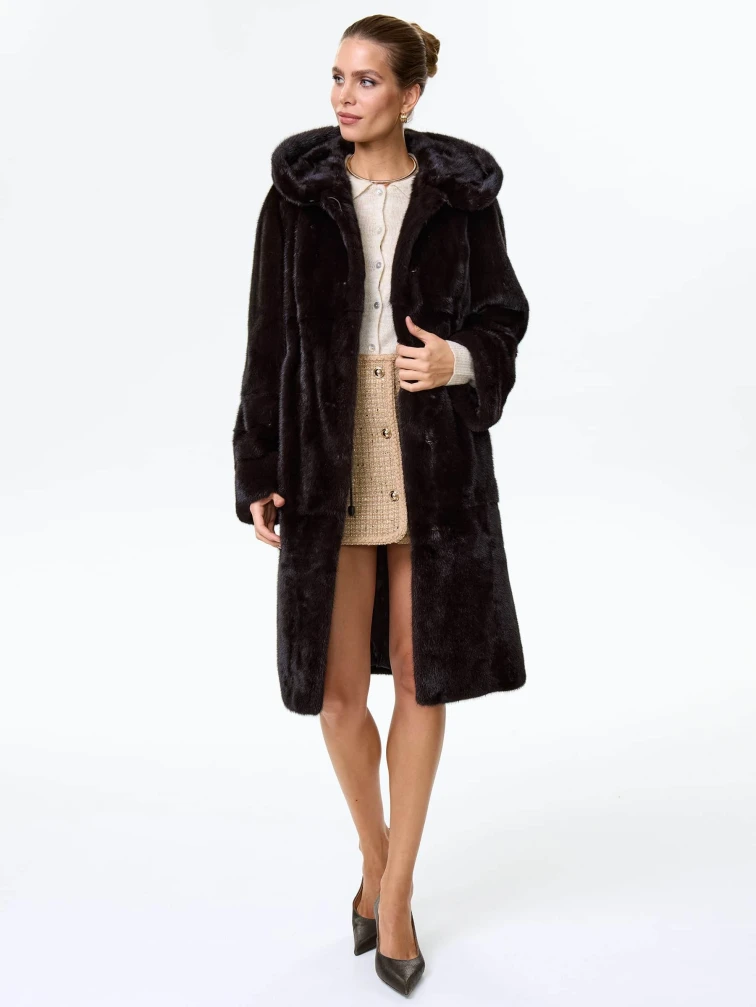 Шуба длинная из меха норки женская Надежда(к), черная, размер 48, артикул 64530