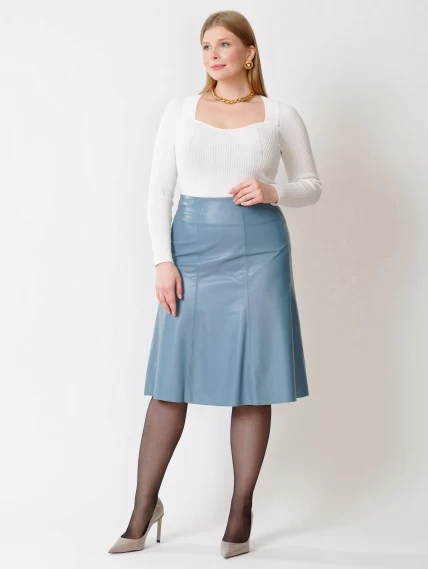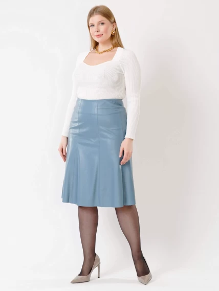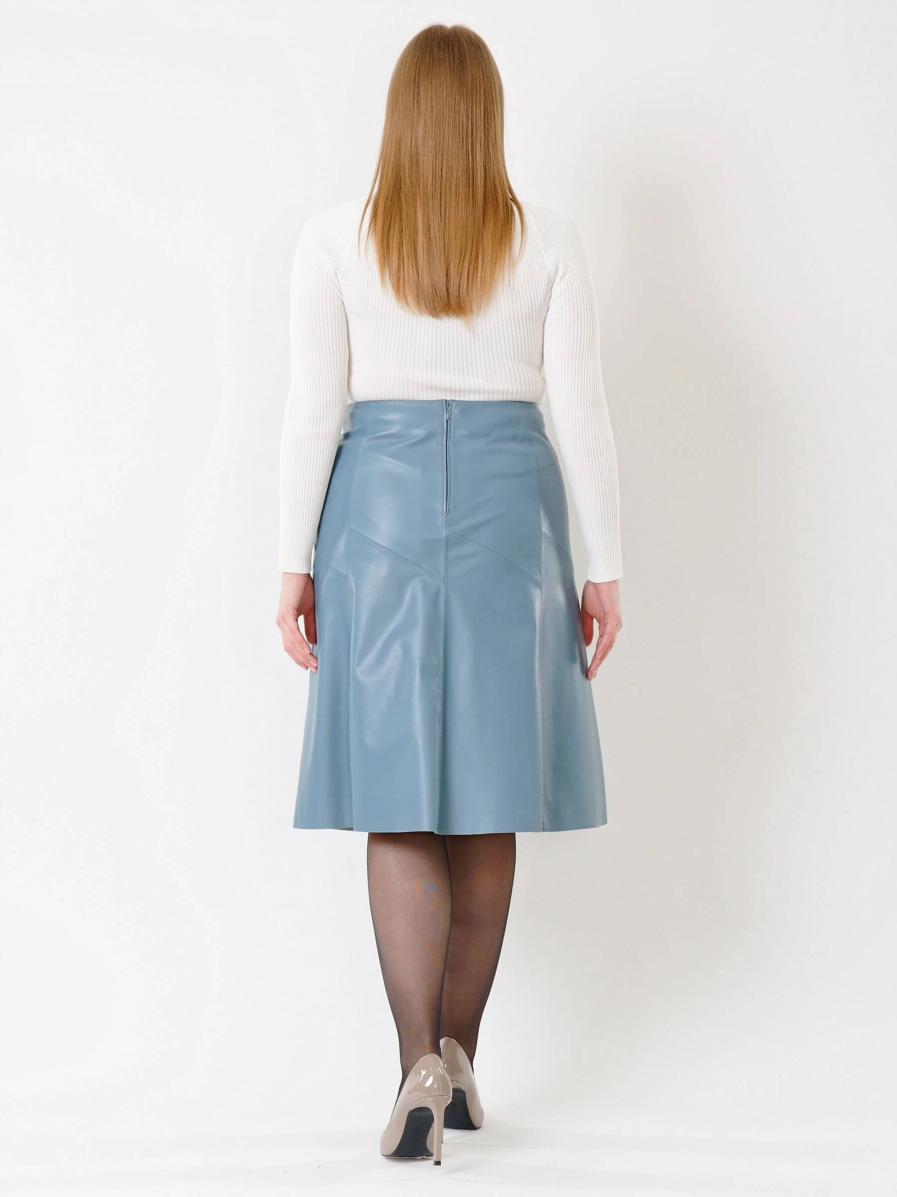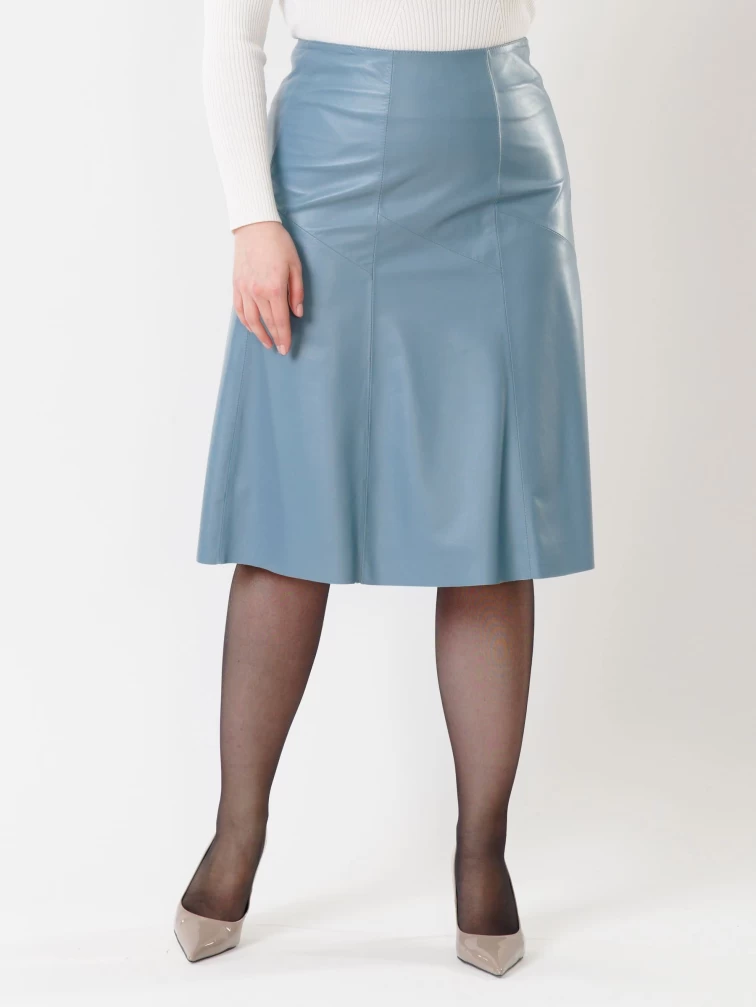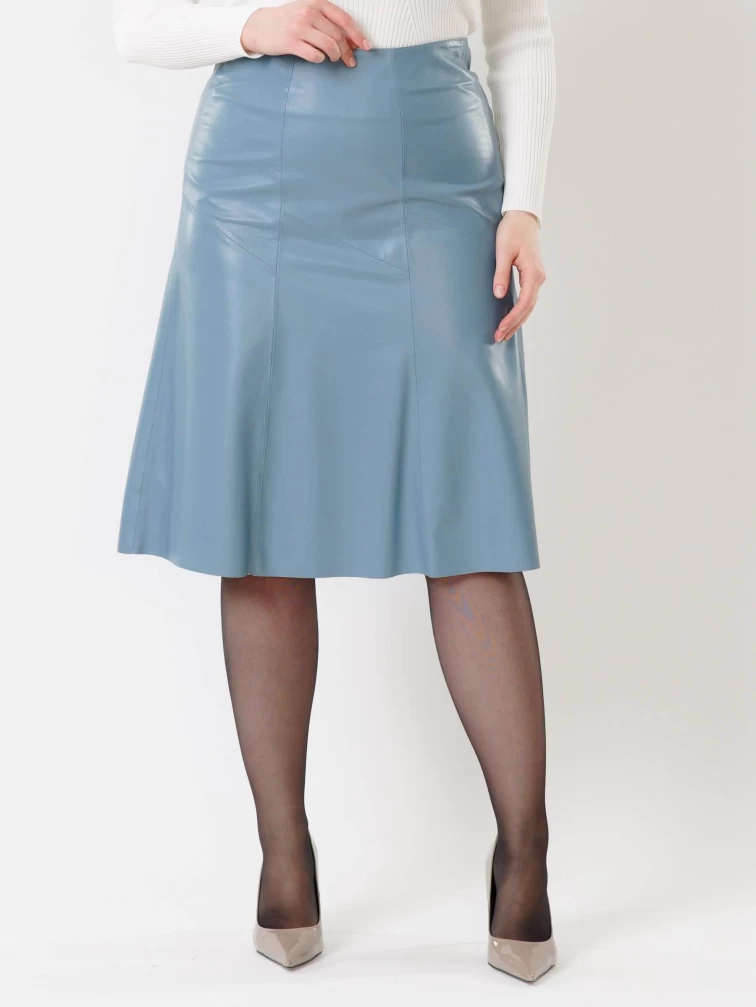 Расклешенная кожаная юбка 04, голубая, размер 48, артикул 85410