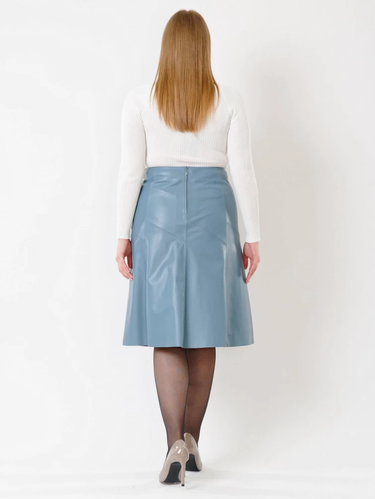 Товар расклешенная кожаная юбка 04, голубая, размер 48, артикул 85410 выполнен из натуральной кожи с застежкой молния. Рассчитан на сезон: демисезон. Длина изделия 68 см, силуэт расклешенный.
