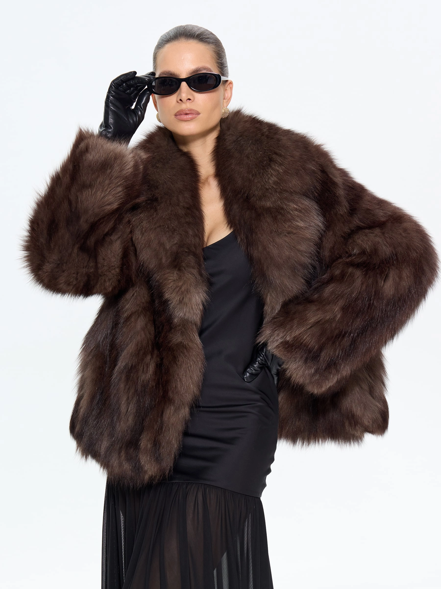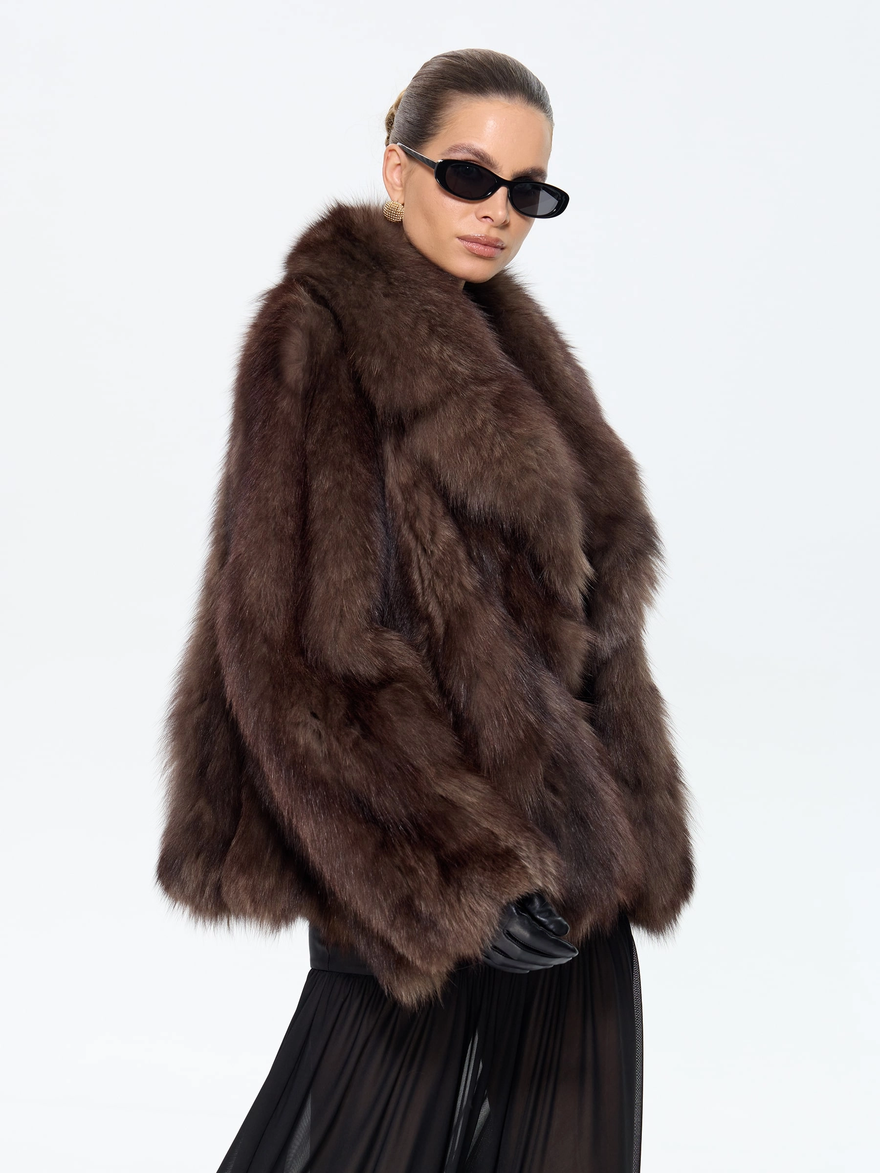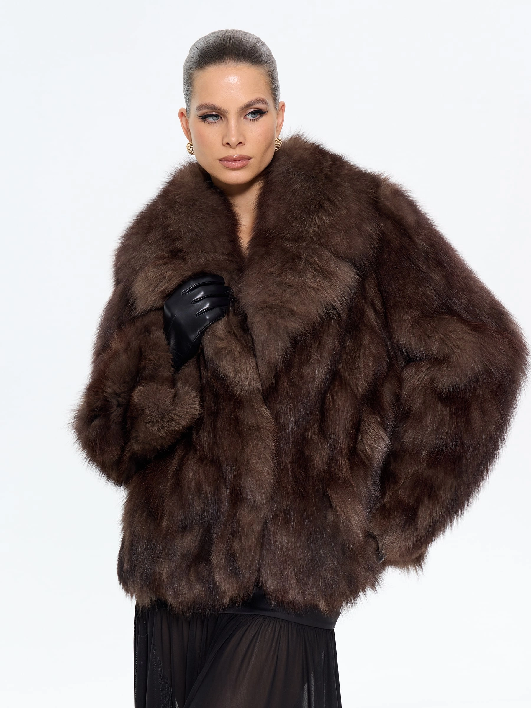Шуба автоледи из меха лисы с элегантным английским воротником — это идеальное сочетание роскоши и практичности для современной женщины за рулем. Ее прямой силуэт и длина 70 см не стесняют движений, а темно-коричневый цвет подчеркивает богатство меха. Стилисты рекомендуют носить эту модель с объемным свитером, кожаными леггинсами и грубыми ботинками, создавая образ дерзкой и уверенной горожанки, которая ценит комфорт, не жертвуя элегантностью.