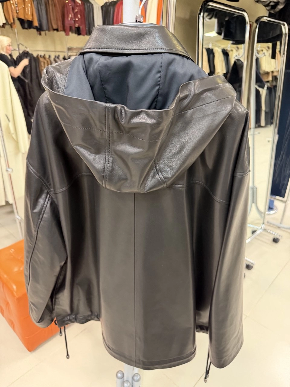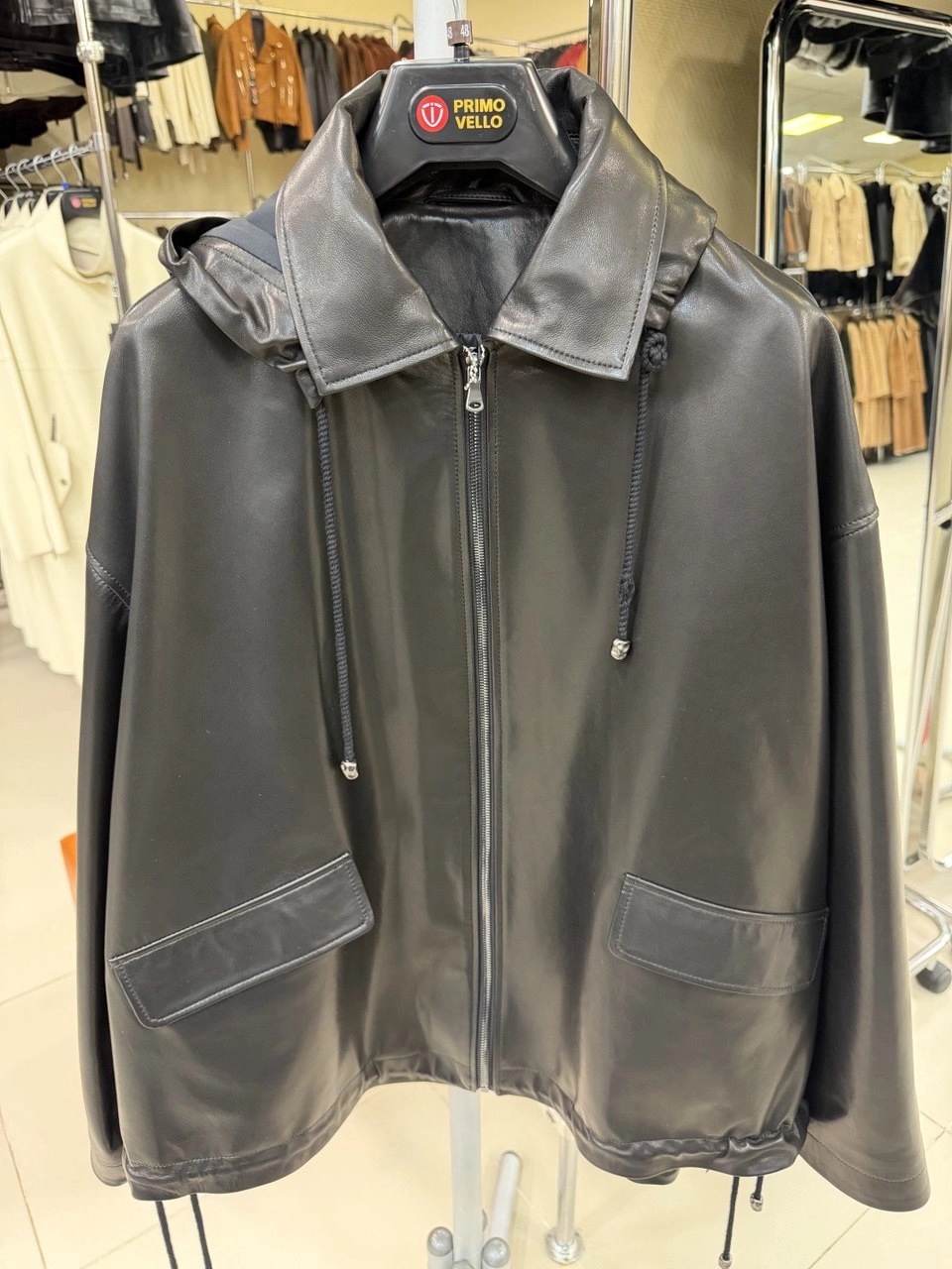 Стильная свободная модель длиной 67 см из мягкой натуральной кожи премиального качества: удобный спущенный рукав и отложной воротник в паре со съёмным капюшоном создают универсальный образ, а карманы с клапанами, регулируемые кулиски на капюшоне и по низу изделия добавляют практичности. Совет стилиста: носите с кожаными брюками и грубыми ботинками для дерзкого лука или с джинсами-скинни и объёмным свитером для повседневного уюта — эта куртка подарит невероятный комфорт и свободу движений в любой ситуации.