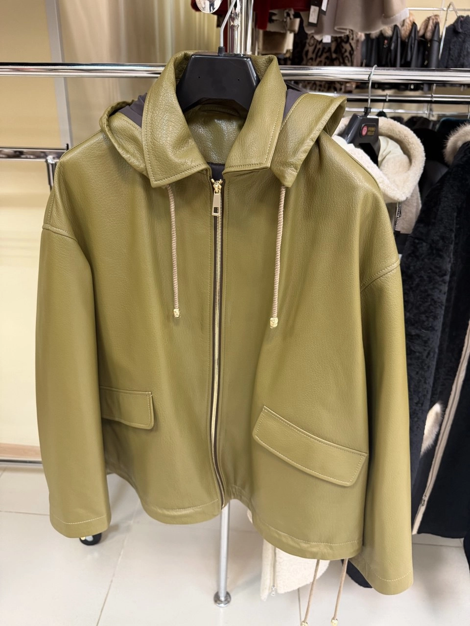 Товар женская кожаная куртка с капюшоном премиум класса 3102, зеленая, размер 44, артикул 92160 выполнен из натуральной кожи с застежкой молния. Рассчитан на сезон: весна-лето. Длина изделия 67 см, силуэт свободный.