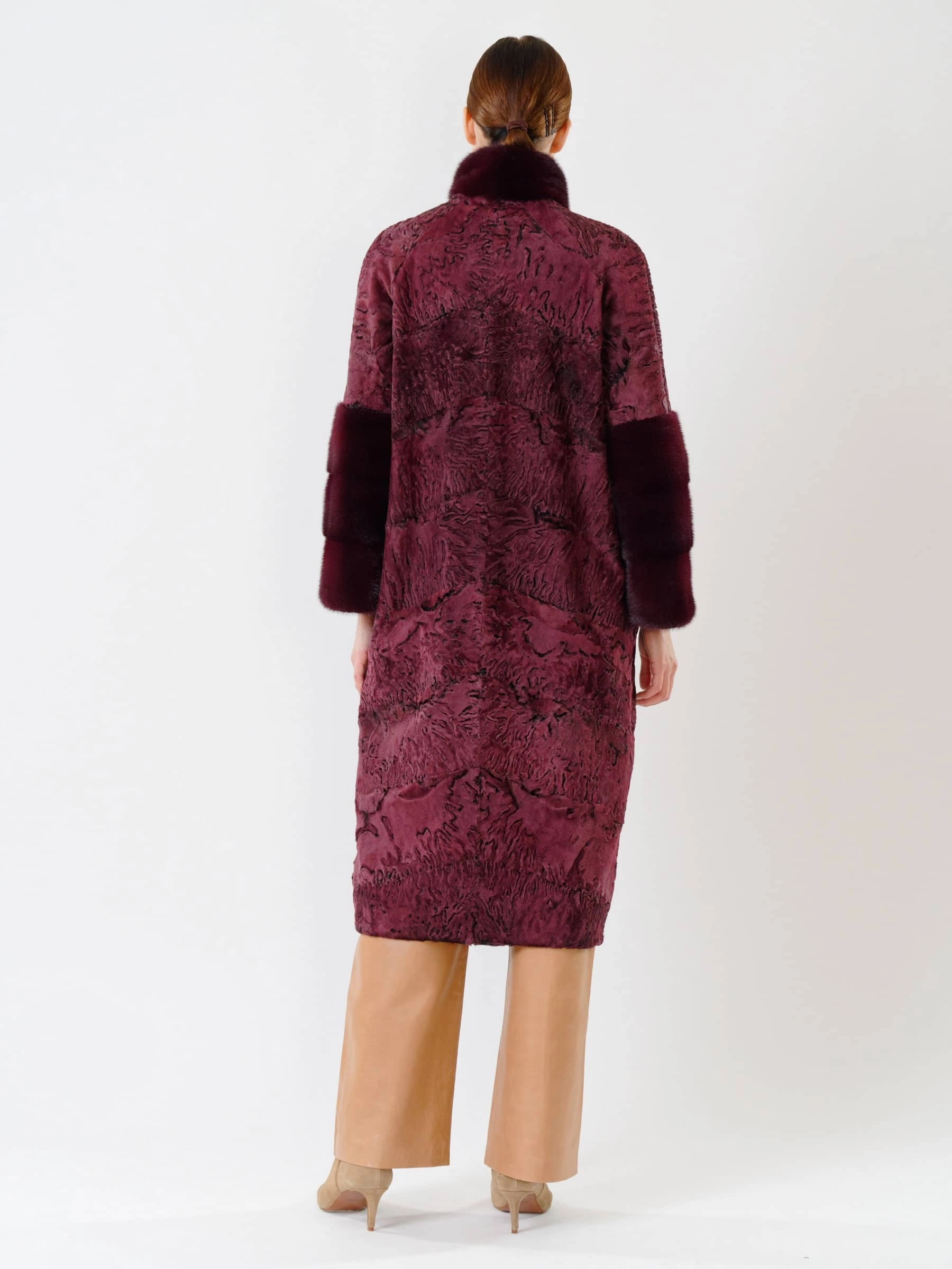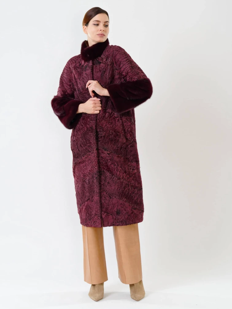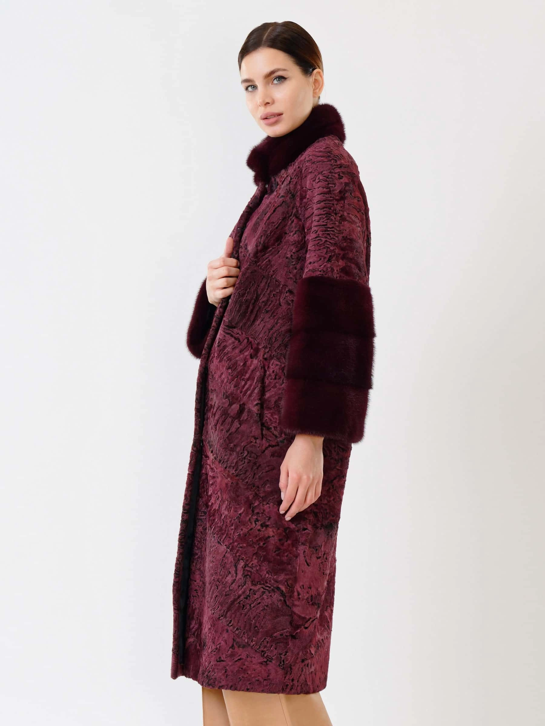 Женская шуба из меха каракуля с мехом норки 17101д(сн), бордовая, размер 44, артикул 22620