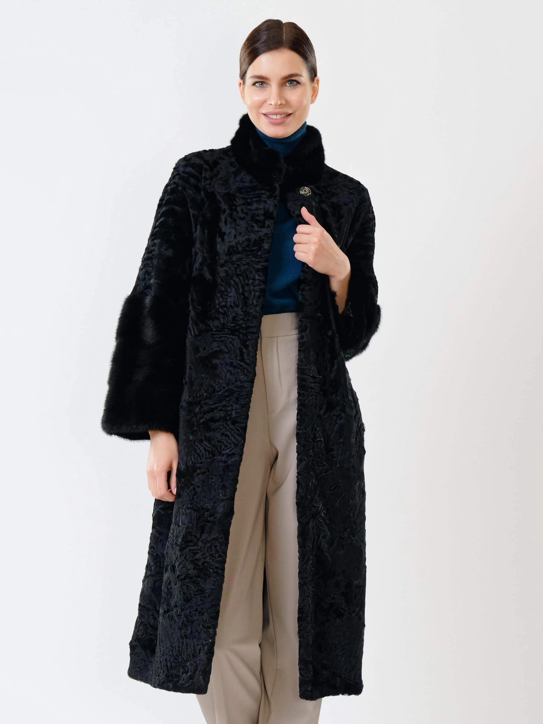 Женская шуба из меха каракуля с мехом норки 17101д(сн), черная, размер 44, артикул 22650
