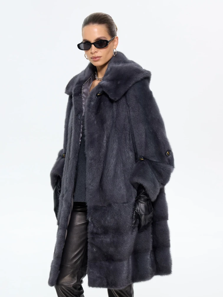 Классическая шуба из меха норки премиум-класса в глубоком оттенке «графит» — это инвестиция в ваш безупречный стиль. Ее прямой силуэт длиной 100 см, практичный капюшон и уникальная деталь — регулируемый по длине втачной рукав — позволяют идеально адаптировать образ под ваше настроение. Совет от стилистов: универсальность этой шубы поражает. Для повседневной элегантности сочетайте ее с джинсами, водолазкой и уггами, а для вечернего выхода — набросьте на плечи поверх однотонного платья-футляра. Эта модель не просто согреет, а стаольным образом подчеркнет вашу утонченность и чувство стиля в любой ситуации.
