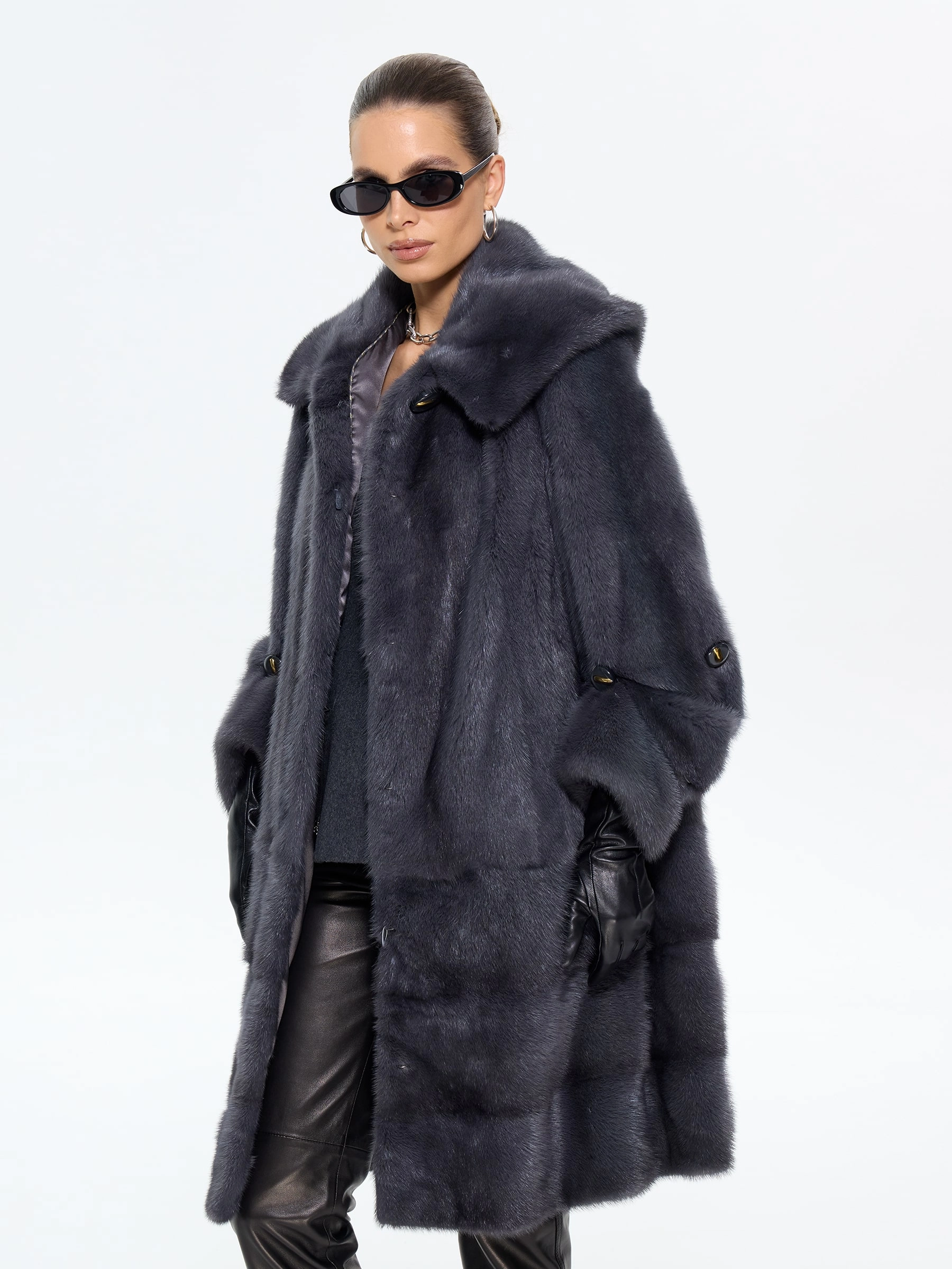 Женская шуба из меха норки с капюшоном М-101-3- 319, графитовая, размер 54, артикул 65380